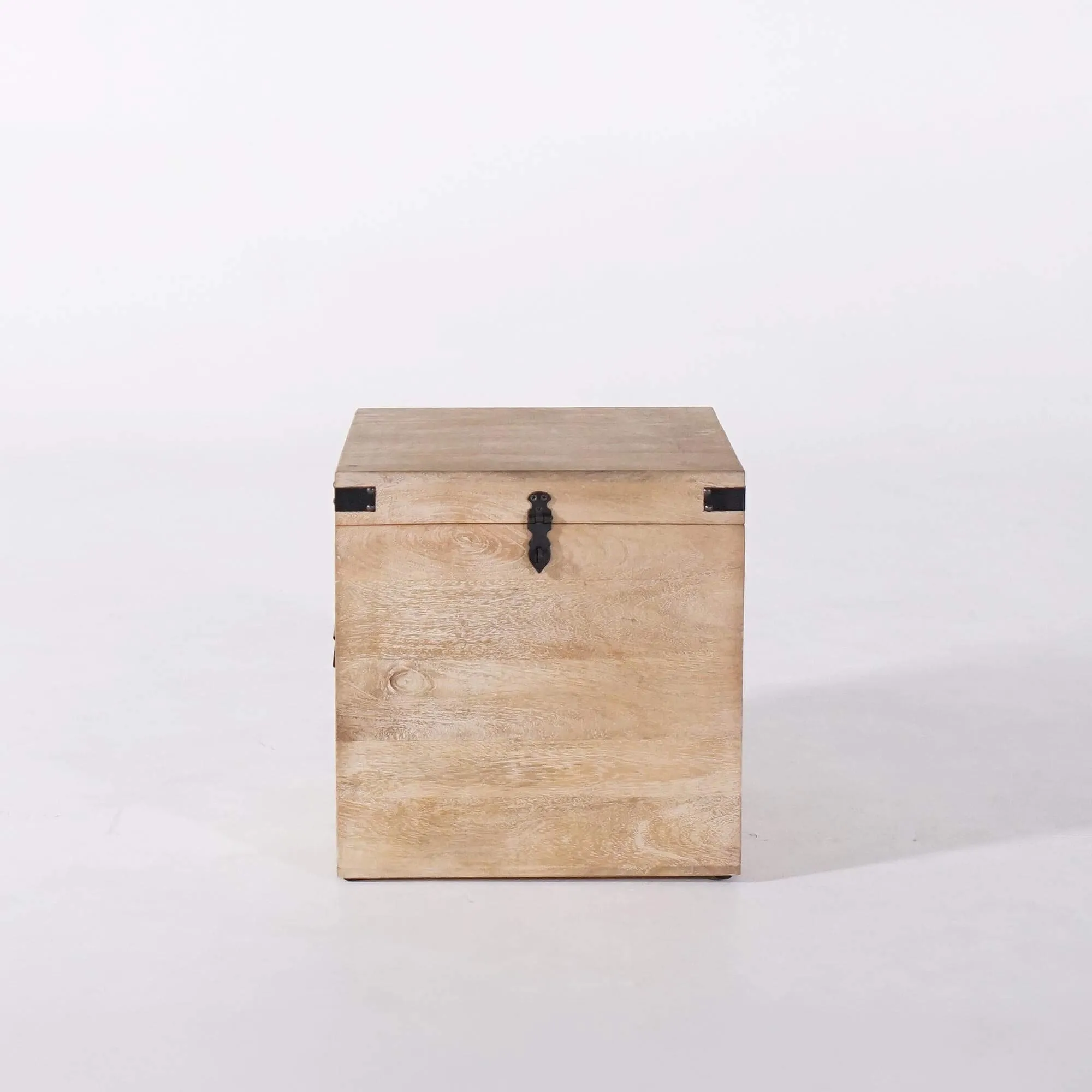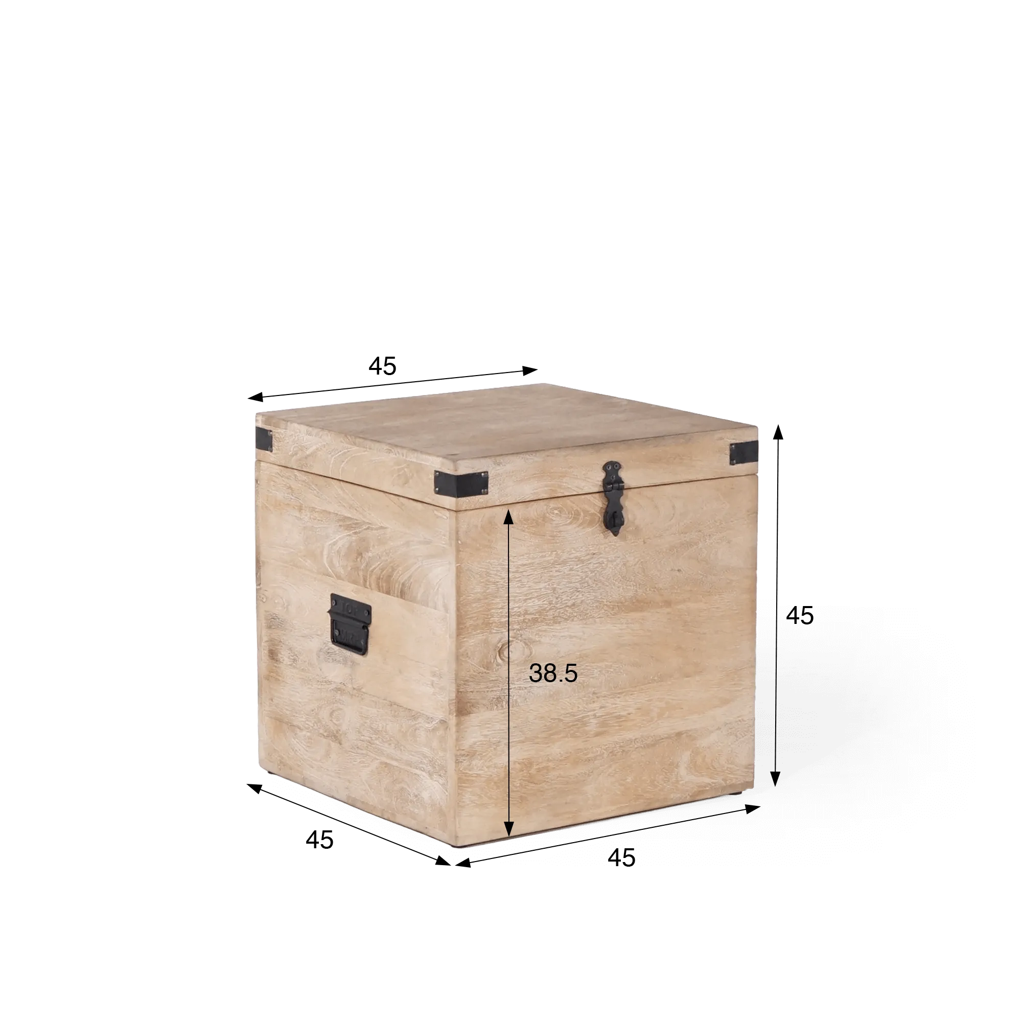 Wir haben die Aufbewahrungstruhe Haven aus Holz als kleinen Begleiter für den Alltag entworfen: zugleich praktisch, warm und zurückhaltend. Mit ihrem kompakten Format von 45 × 45 × 45 cm findet sie überall im Zuhause ihren Platz – am Fußende des Bettes, neben einem Sessel oder in einem hellen Eingangsbereich. Uns war wichtig, dass sie echten Stauraum bietet. Deshalb verfügt sie über eine Innenhöhe von etwa 38,5 cm – ideal für Textilien, Kissen, Bücher oder Dinge des Alltags, ohne den Raum optisch zu beschweren.