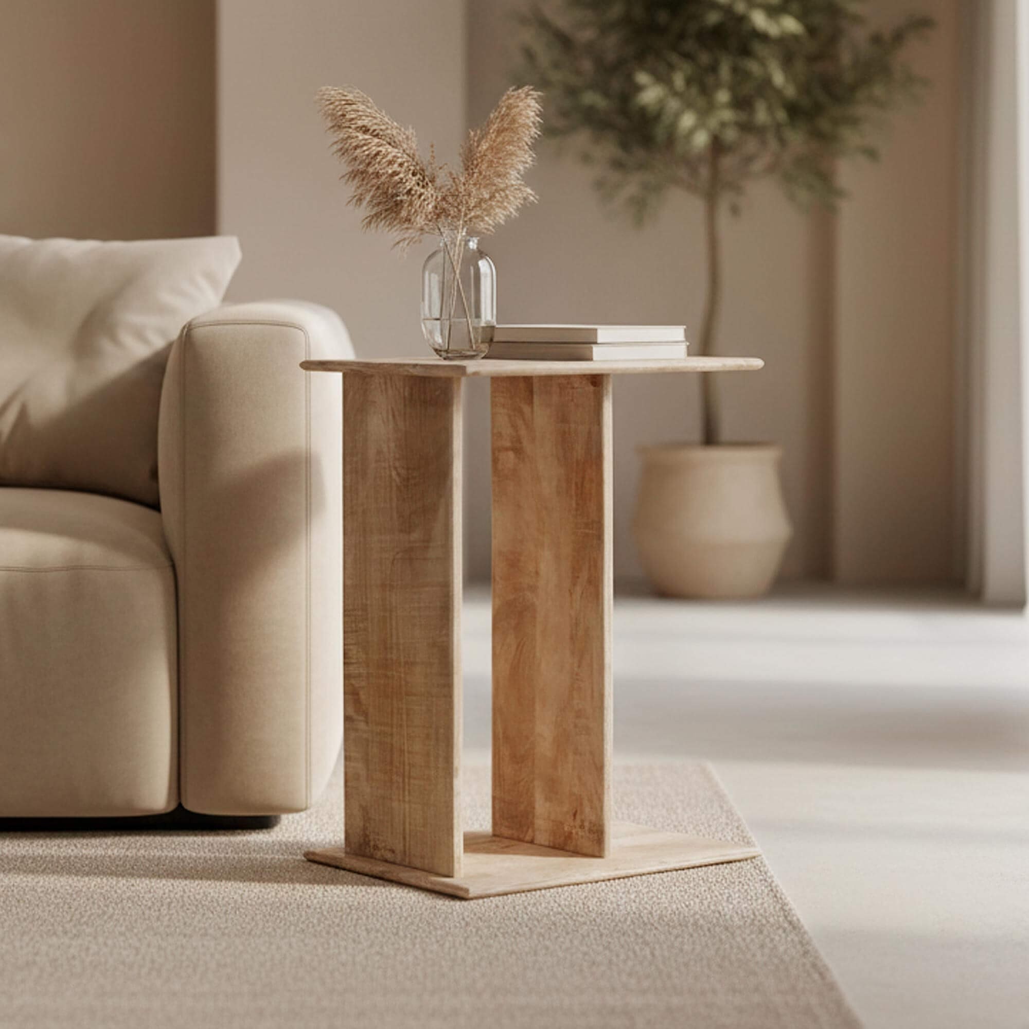 Wir haben den Beistelltisch aus Massivholz Luno als ein dezentes, aber unverzichtbares Möbelstück entworfen – gedacht, um den Alltag ganz natürlich zu begleiten. Seine bewusst reduzierte Silhouette spielt mit dem Gleichgewicht aus Vertikalität und horizontalen Linien und wirkt dadurch ebenso funktional wie visuell leicht. Gefertigt aus massivem Mangoholz zeigt dieser Beistelltisch aus Massivholz eine schöne Maserung und einen hellen Ton, der einem Wohnraum sofort mehr Weichheit verleiht.