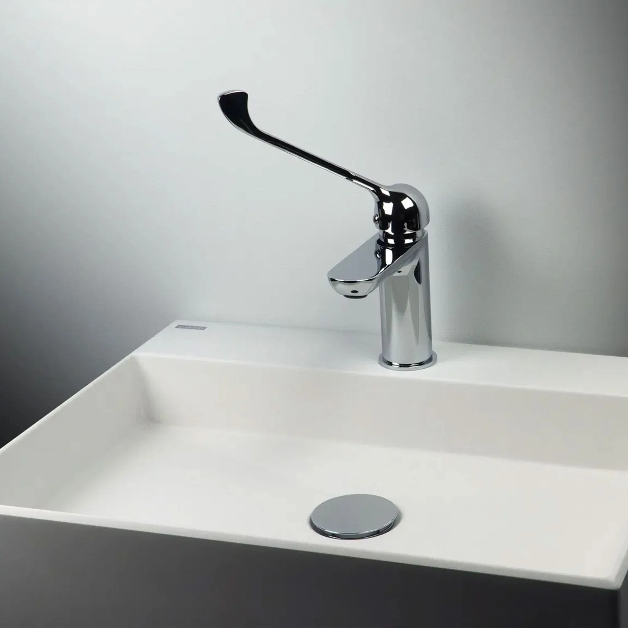 Wir haben diesen universellen runden Clic Clac-Ablauf mit Metallhülse aufgrund seiner Vielseitigkeit und seines dezenten Designs gewählt, das die Reinheit der Linien des Waschbeckens betont, ohne die Praktikabilität zu beeinträchtigen. Das Produkt ist vom Nationalen Hygieneinstitut zertifiziert und erfüllt die strengsten europäischen Gesundheitsstandards.