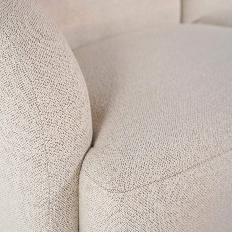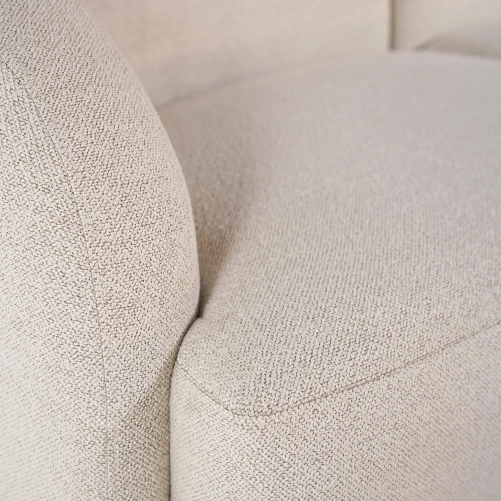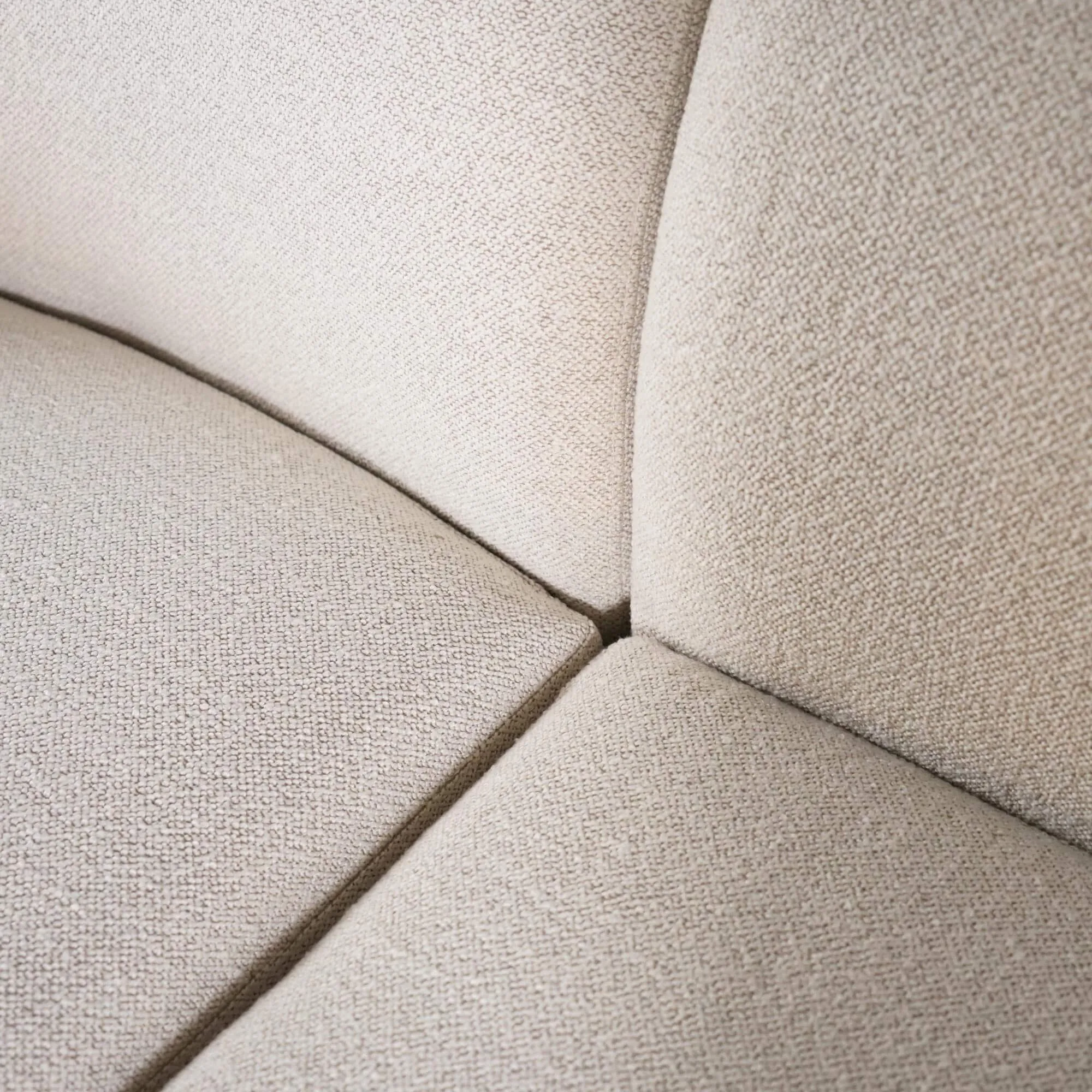 Für dieses Modell haben wir einen texturierten Stoff gewählt, inspiriert vom Bouclé, angenehm im Griff und widerstandsfähig im täglichen Gebrauch. Oeko-Tex®-zertifiziert, garantiert er dauerhaften Komfort und hervorragende Farbbeständigkeit, mit einer Abriebfestigkeit von über 45.000 Martindale-Zyklen und nahezu keiner Knötchenbildung (Pilling 4-5). Die Sitzfläche dieses Design-2-Sitzer-Sofas kombiniert HR-Schaum mit hoher Dichte, ein System aus Taschenfedern und Schichten aus PU-Schaum, um sowohl Halt als auch Geschmeidigkeit zu bieten. Die Rückenlehne ist mit sorgfältig abgestuften Schaumschichten ausgestattet, die gleichmäßigen Komfort sichern – ideal für entspannte Momente und lange, gesellige Abende.