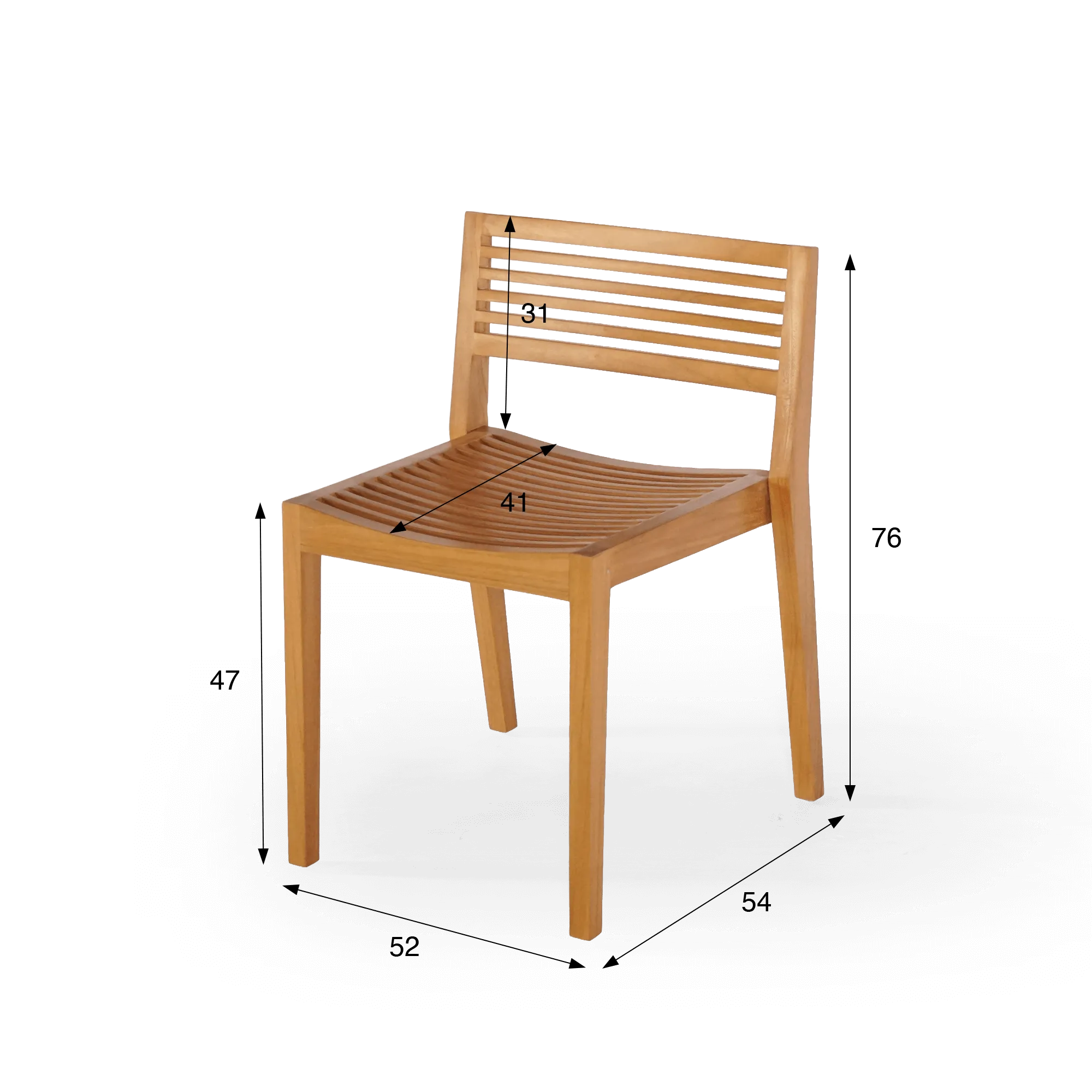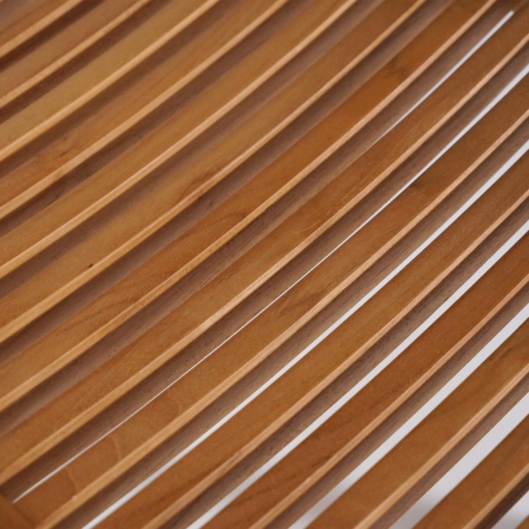 Das Design des Gartenstuhls aus Teakholz Kaito zeichnet sich durch klare Linien und eine subtile Arbeit mit Holzleisten aus. Die Rückenlehne mit feinen horizontalen Streben bietet angenehmen Halt und bewahrt zugleich eine optische Leichtigkeit. Die leicht geschwungene Sitzfläche, aus präzise angeordneten Teakleisten gefertigt, passt sich der Körperhaltung natürlich an und unterstützt den Komfort bei langen Mahlzeiten im Freien. Mit einer Sitzbreite von etwa 41 cm und einer Rückenlehne von etwa 31 cm Höhe findet der Gartenstuhl aus Teakholz Kaito das richtige Gleichgewicht zwischen Kompaktheit und Wohlbefinden.