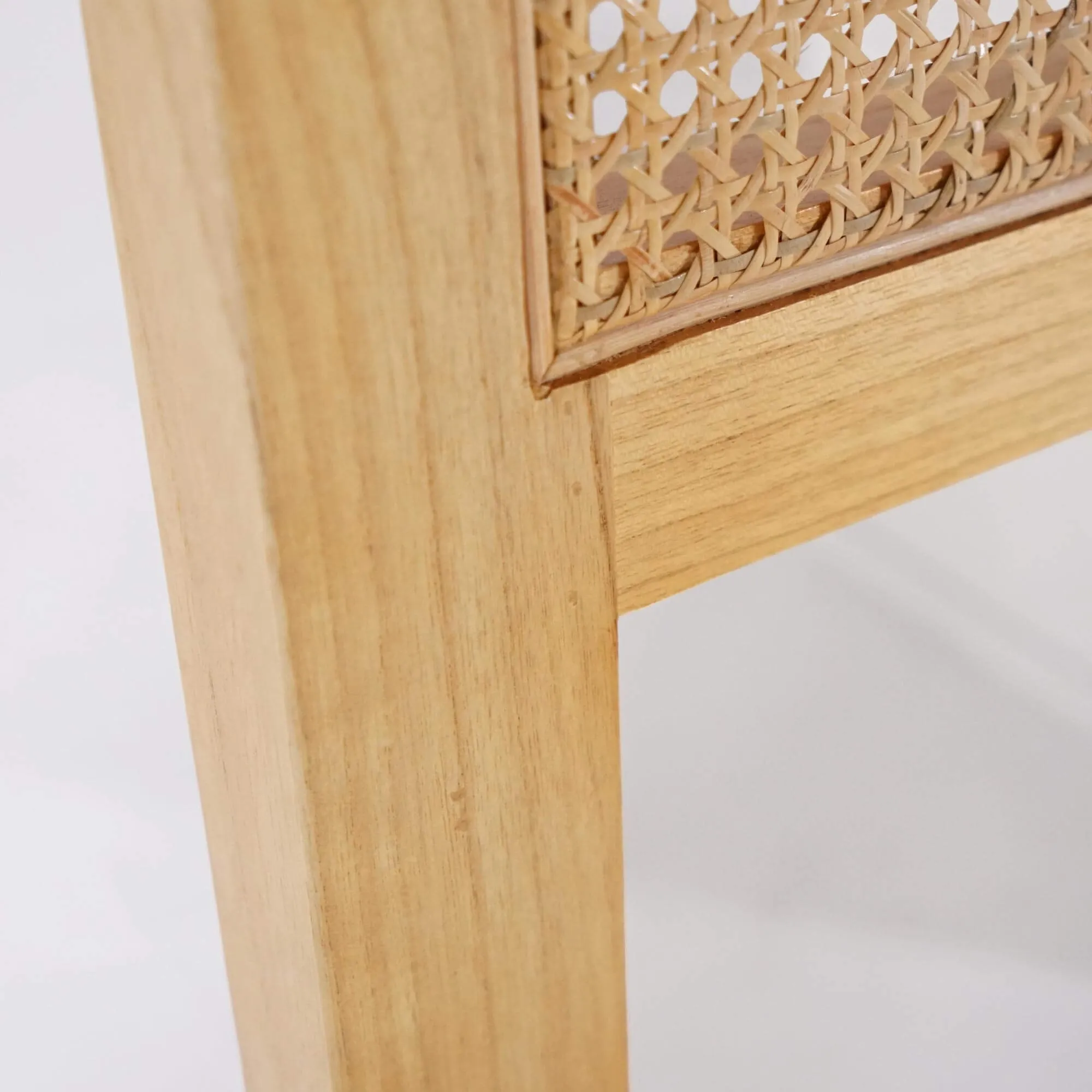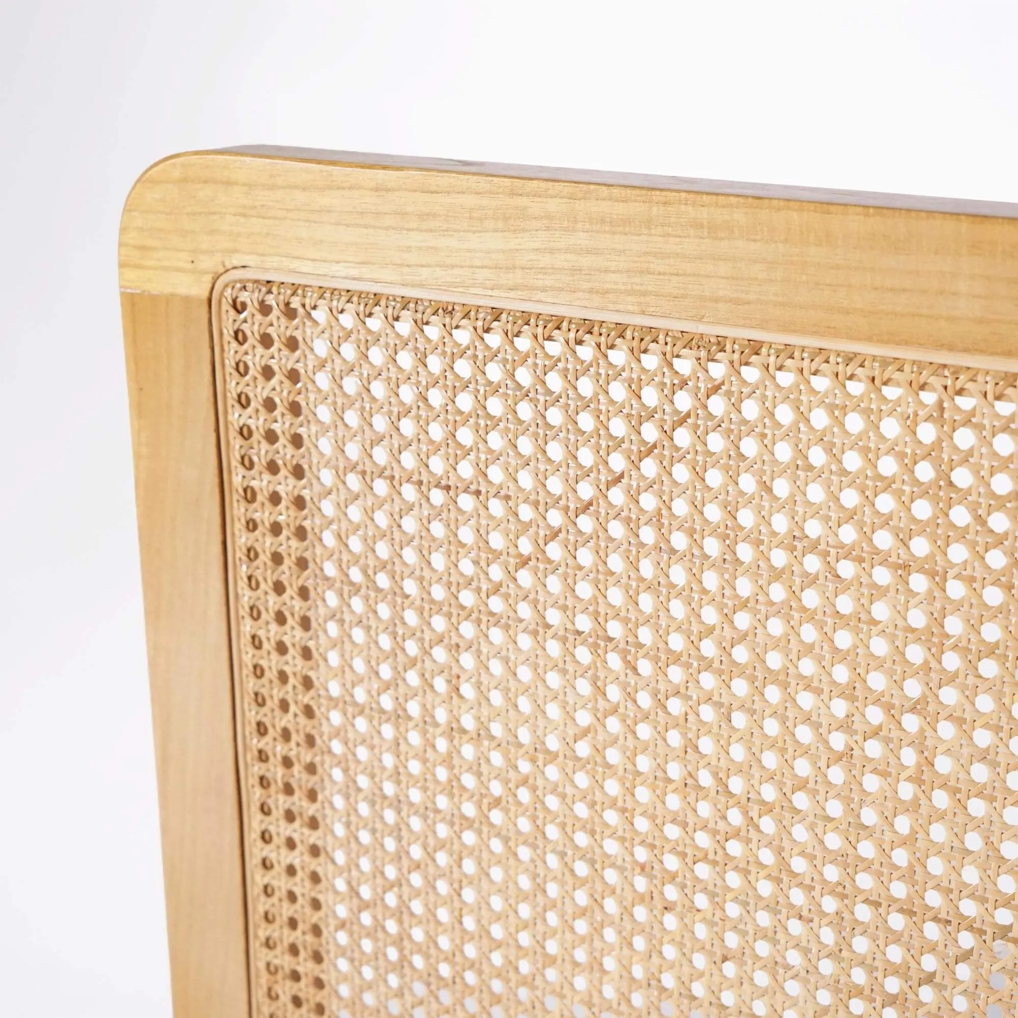 Mit der Bahia-Reihe Kopfteile aus Holz wollten unsere Designer die warme Schlichtheit natürlicher Materialien feiern. Dieses Holz-Kopfteil aus massivem Mindiholz mit Rohrgeflecht wirkt ruhig und zugleich raffiniert – ideal, um ein helles, aufgeräumtes Schlafzimmer zu gestalten. Mindi, das wir wegen seines sanften Farbtons und seiner Maßstabilität schätzen, bildet einen Rahmen mit abgerundeten Linien, der ein von Hand geflochtenes Rohrgeflecht aufnimmt. So entsteht eine natürliche Atmosphäre – zwischen aktuellem Design und handwerklicher Inspiration.