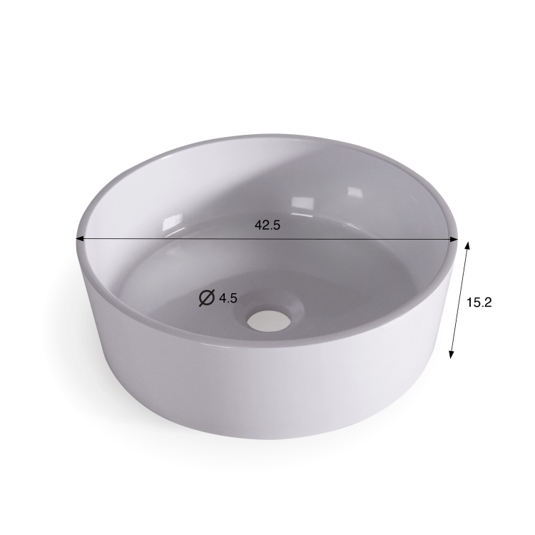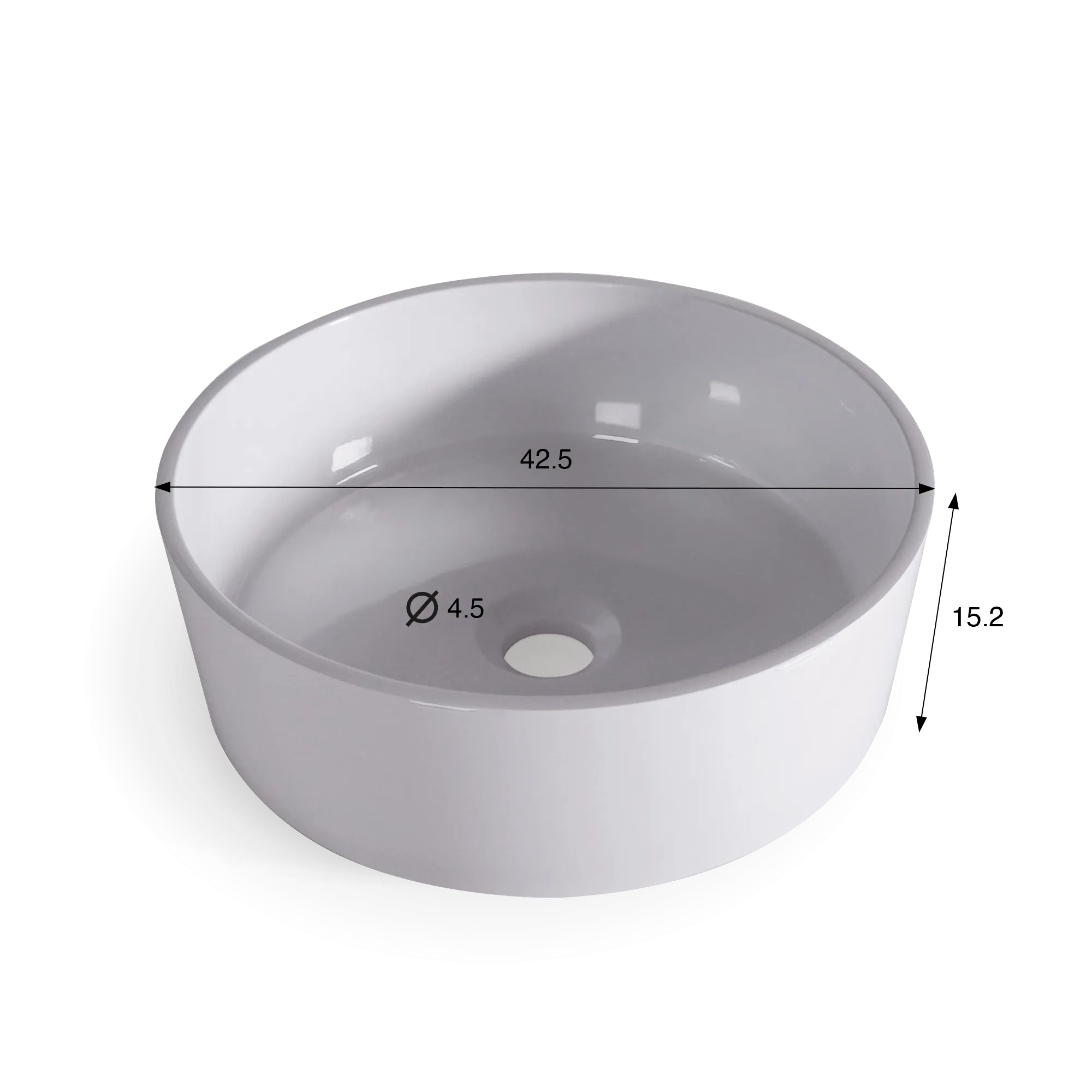 Rundes Aufsatzwaschbecken aus Keramik, glänzend weiß – Rundo