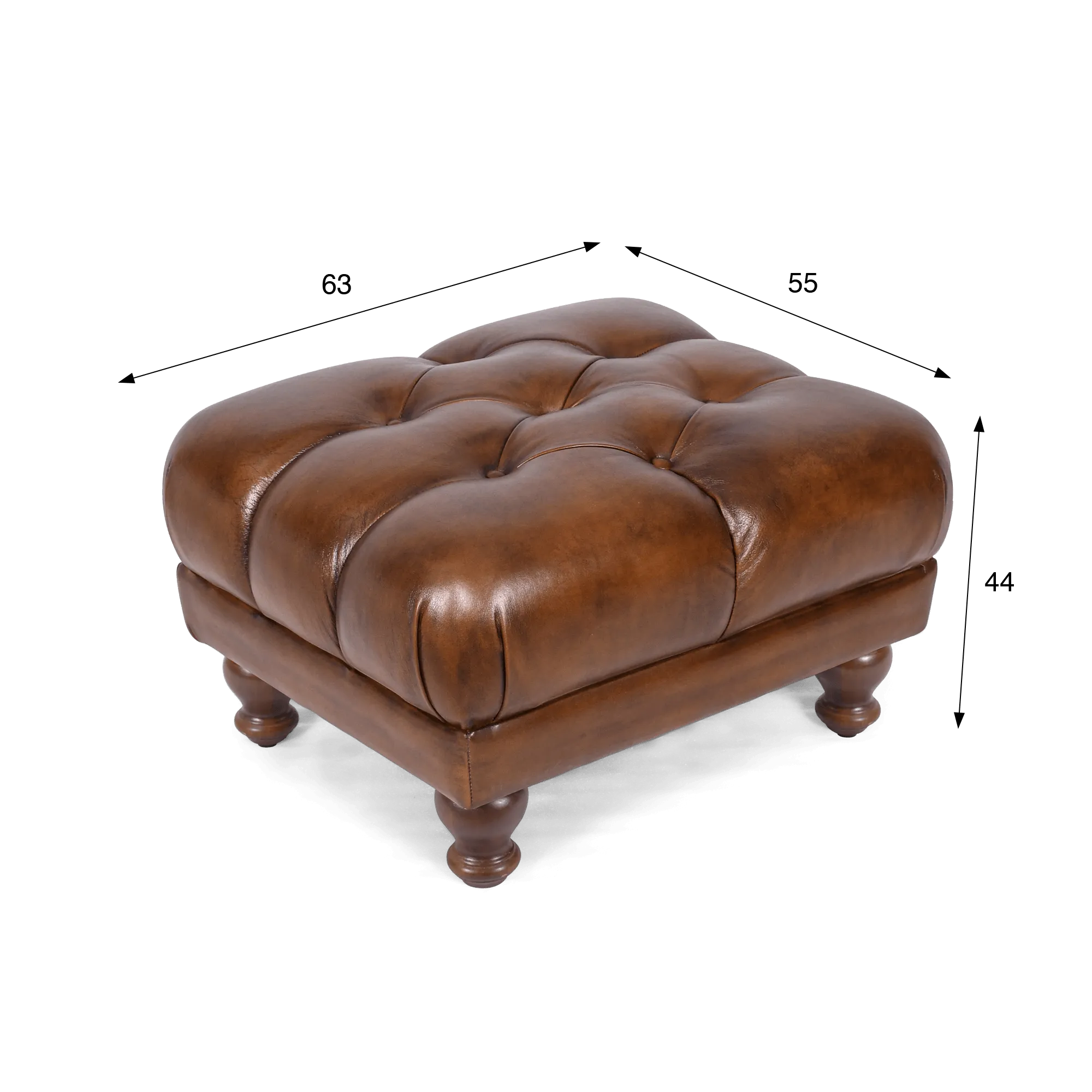 Mit ausgewogenen Proportionen von etwa 55 x 63 cm findet dieser geknöpfte Pouf aus echtem Leder leicht seinen Platz in einem Wohnzimmer, als Sofaende oder als zentrales Element. Seine Höhe von rund 40 cm macht ihn zu einer idealen Fußablage, aber auch zu einer komfortablen Zusatzsitzgelegenheit in geselligen Momenten. Die dichte Polsterung sorgt für dauerhaften Halt, den wir zugleich einladend und widerstandsfähig für den täglichen Gebrauch gestalten wollten.