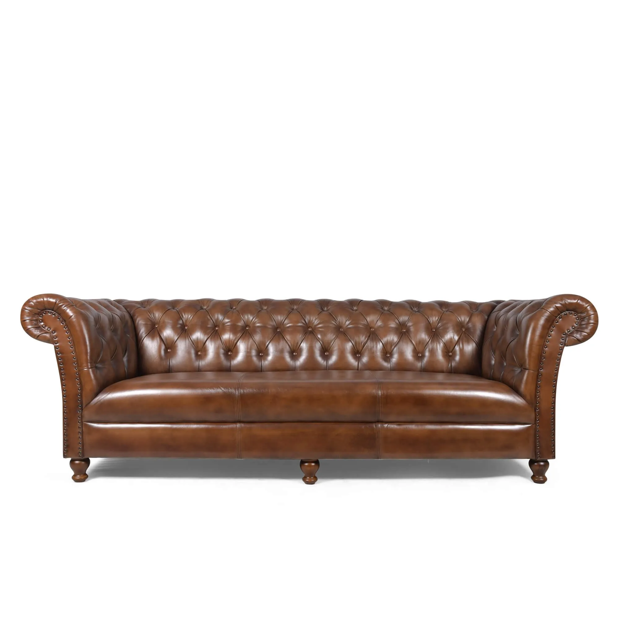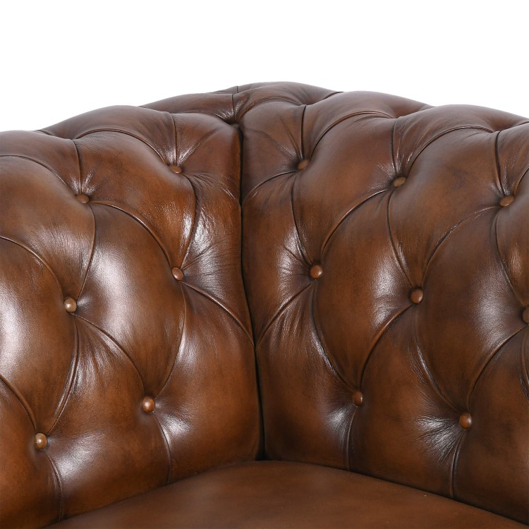 Chesterfield-Sofa aus braunem Echtleder, 3-Sitzer - Henry