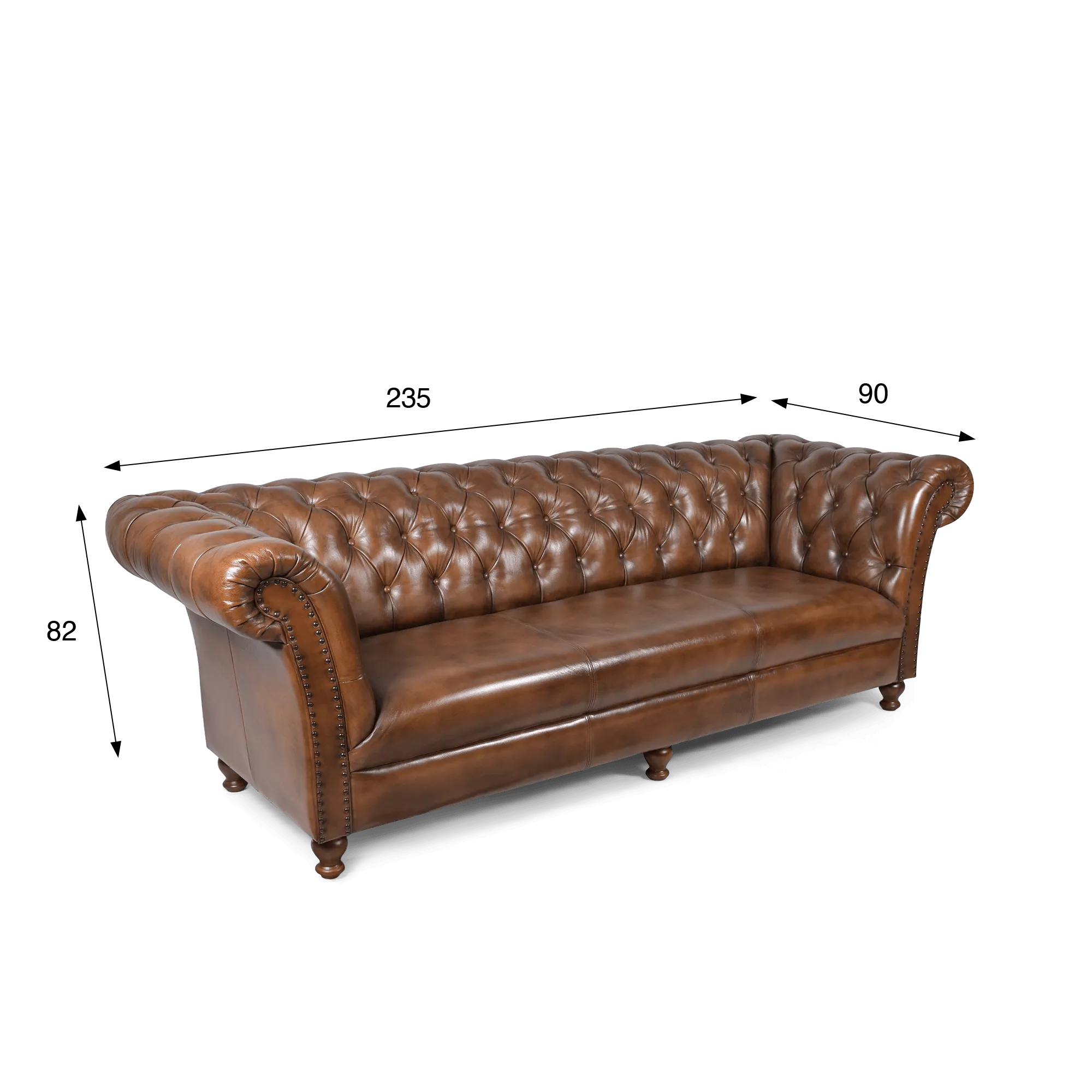 Mit einer Sitzlänge von etwa 200 cm bietet das braune Chesterfield-Sofa aus echtem Leder Henry als 3-Sitzer eine großzügige Sitzfläche, auf der drei Personen bequem Platz finden. Seine Sitztiefe von rund 60 cm schafft ein ausgewogenes Verhältnis zwischen Halt und Komfort und ist ideal für längeres Verweilen. Die Konstruktion steht auf Füßen aus Massivholz aus Mango, die wegen ihrer Robustheit und ihres warmen Farbtons ausgewählt wurden und harmonisch mit dem Leder zusammenspielen. Dank ihrer einfachen Befestigung ist eine schnelle Montage möglich, damit das Sofa direkt nach der Lieferung problemlos aufgestellt werden kann.