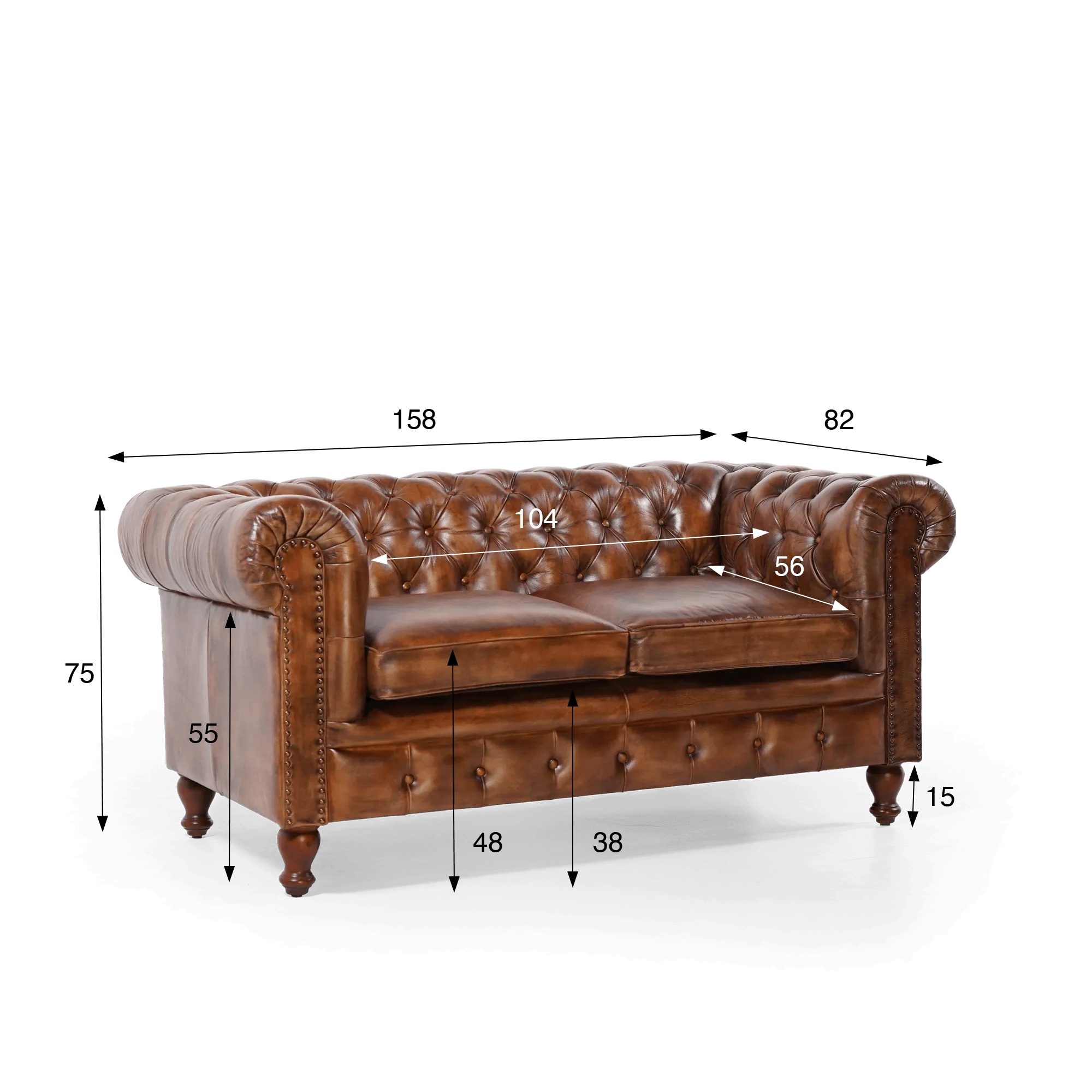 Das braune 2-Sitzer-Chesterfield-Sofa Edward aus echtem Leder wurde so konzipiert, dass es zwei Personen komfortabel Platz bietet. Die ausgewogene Sitzhöhe von etwa 45 cm ist ideal für den täglichen Gebrauch. Die dichte Polsterung sorgt für angenehmen Halt und bewahrt zugleich eine gewisse Geschmeidigkeit, um entspannte Momente ohne Kompromisse zu begleiten. Die gerundeten Armlehnen, die durch eine Linie dekorativer Ziernagelung verlängert werden, umfassen die Sitzfläche und verstärken dieses Gefühl von kontrolliertem Komfort.