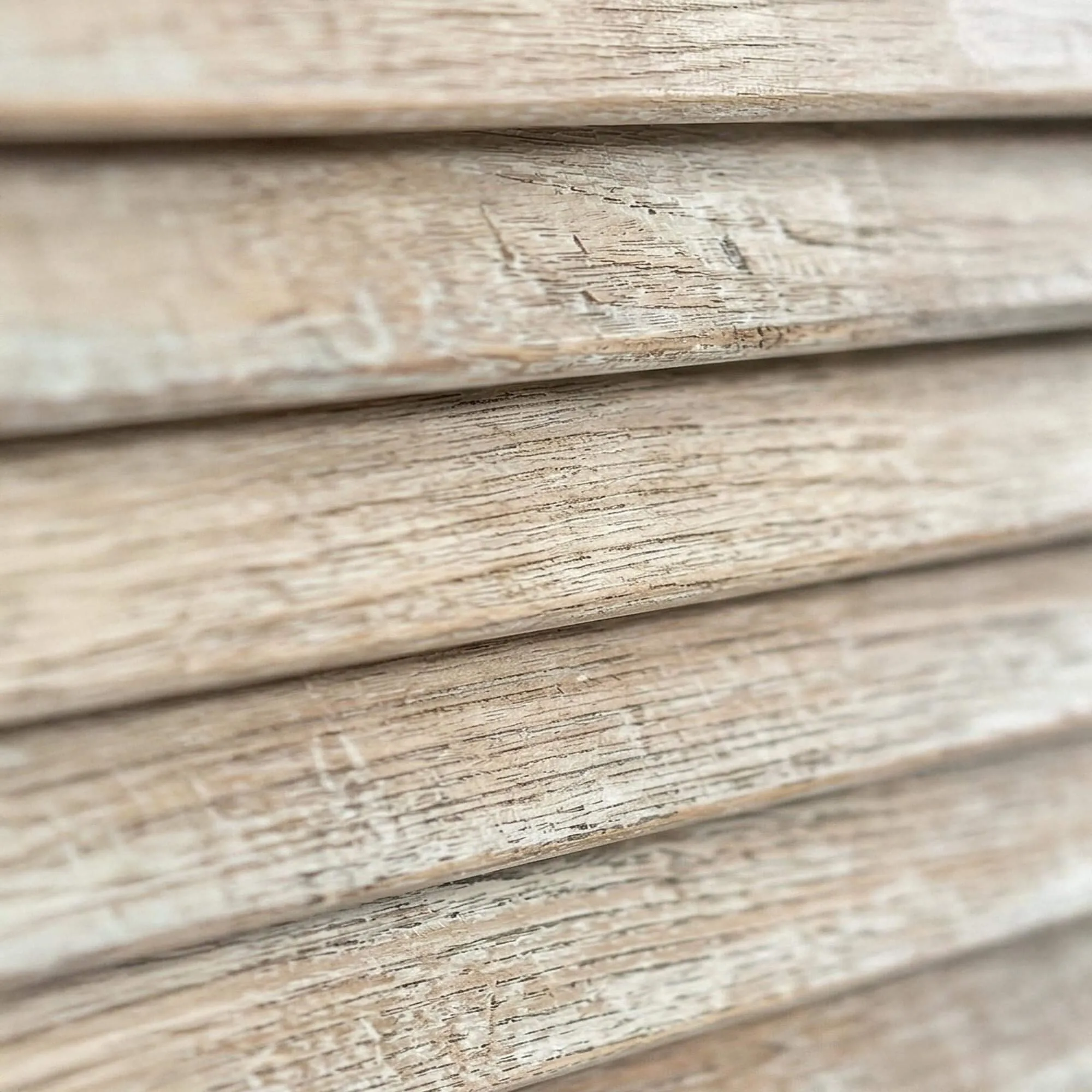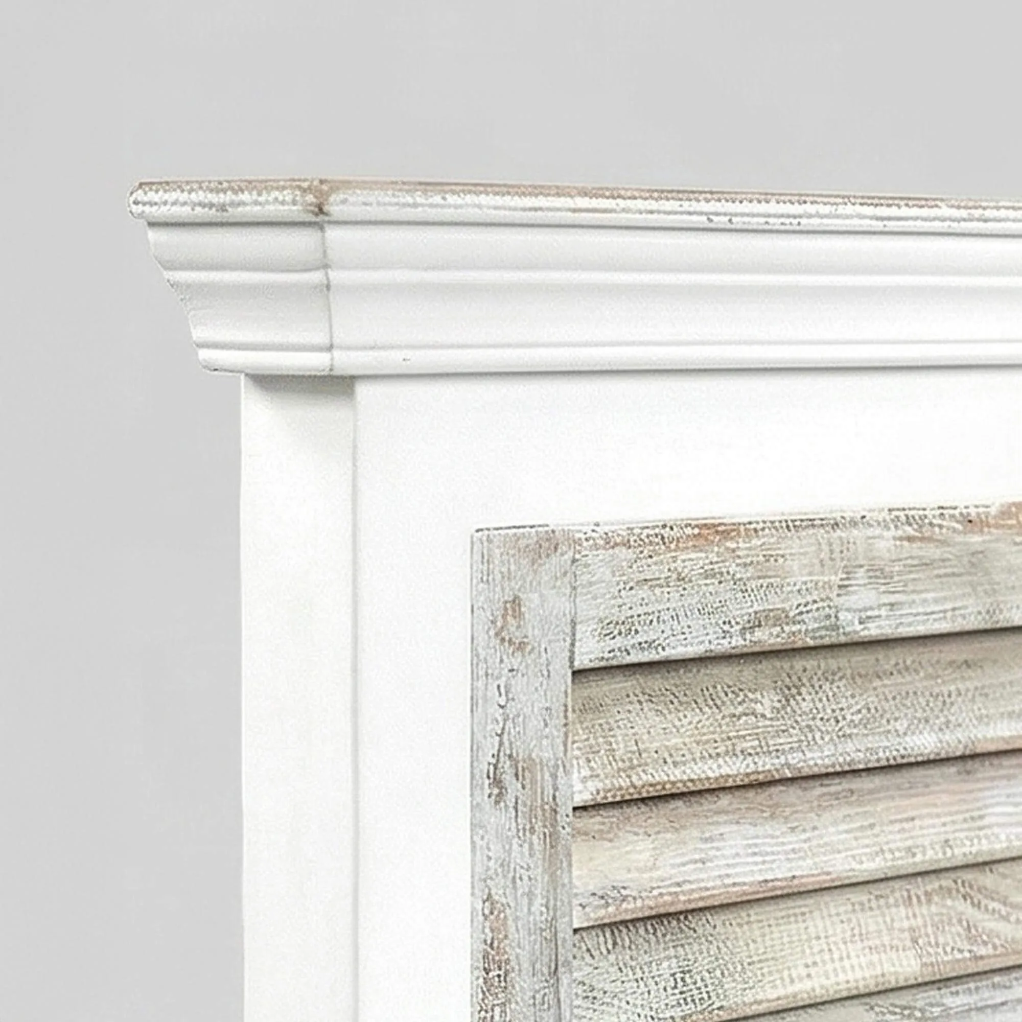 Im Geist lichtdurchfluteter Häuser, die sich zum Horizont hin öffnen, haben wir das Kopfteil aus Holz in Weiß mit Lamellenoptik in 160 cm Sea Side als ein Möbelstück entworfen, das dem Schlafzimmer Sanftheit und Authentizität verleiht. Seine Breite von 160 cm strukturiert den Raum ausgewogen und lässt der umgebenden Dekoration zugleich genügend Luft. Der feine Kontrast zwischen der weißen Struktur und den Paneelen in Lamellenoptik offenbart ein Spiel der Texturen, das an von der Zeit geprägte Fensterläden erinnert und ganz natürlich die ruhige Atmosphäre von Möbeln im Küstenstil hervorruft.
