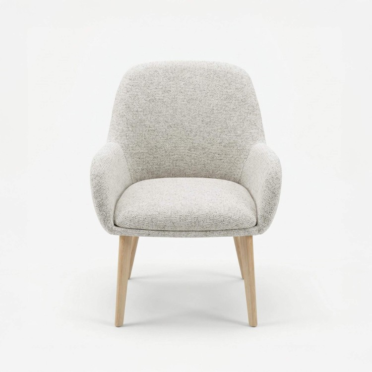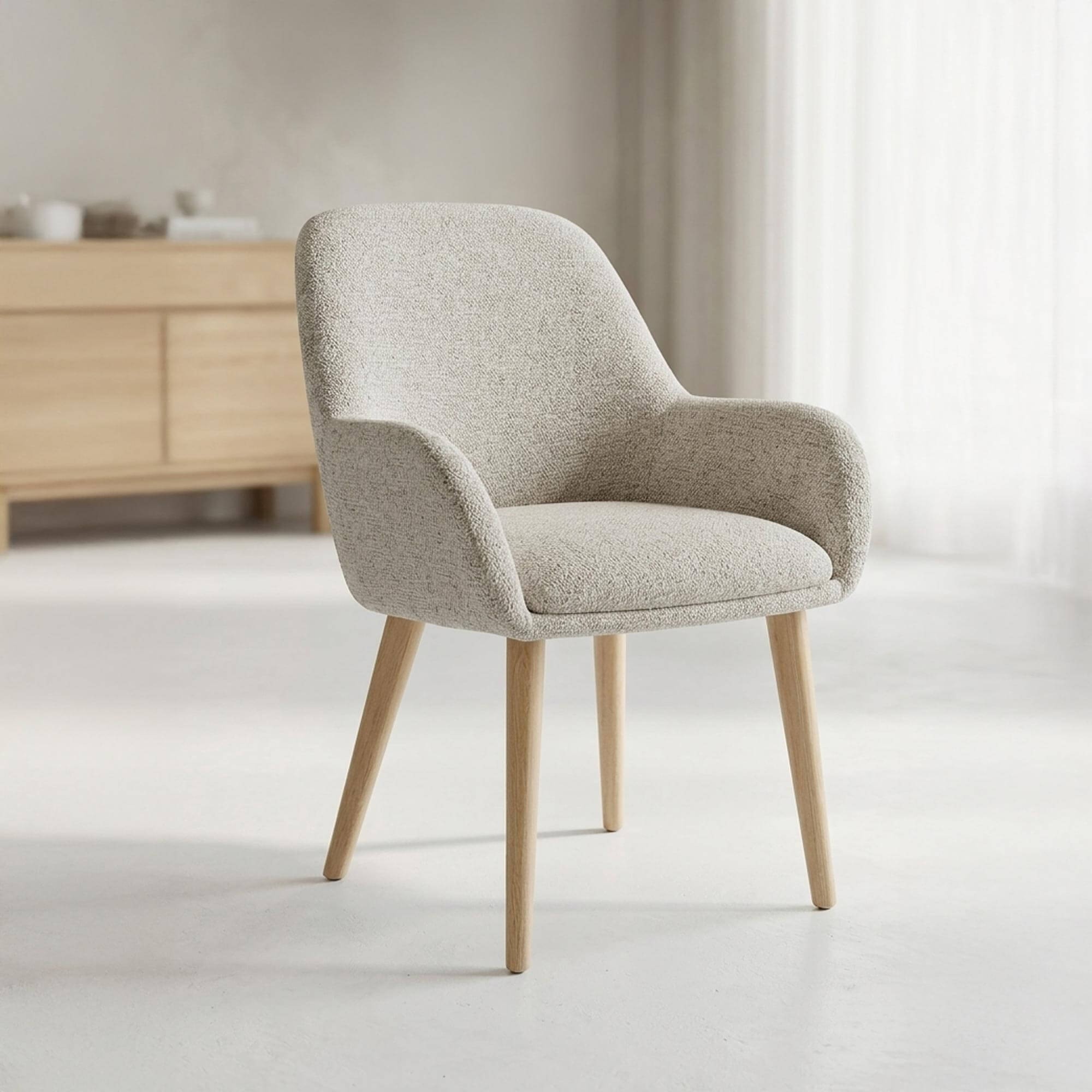 Unsere Designer haben den skandinavischen Esszimmerstuhl Alva aus Stoff als ein einladendes Möbelstück entworfen, das einem zeitgenössischen Interieur sofort eine sanfte Ausstrahlung verleiht. Inspiriert vom skandinavischen Design, zeichnet er sich durch eine fließende, ausgewogene Silhouette aus, bei der jede Linie darauf ausgelegt ist, angenehmen Halt zu bieten und zugleich eine große optische Leichtigkeit zu bewahren. Seine leicht umschließende Rückenlehne und die dezent geformten Armlehnen schaffen eine komfortable Sitzhaltung – ideal für lange Momente am Esstisch.