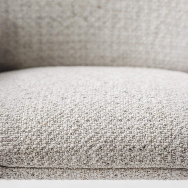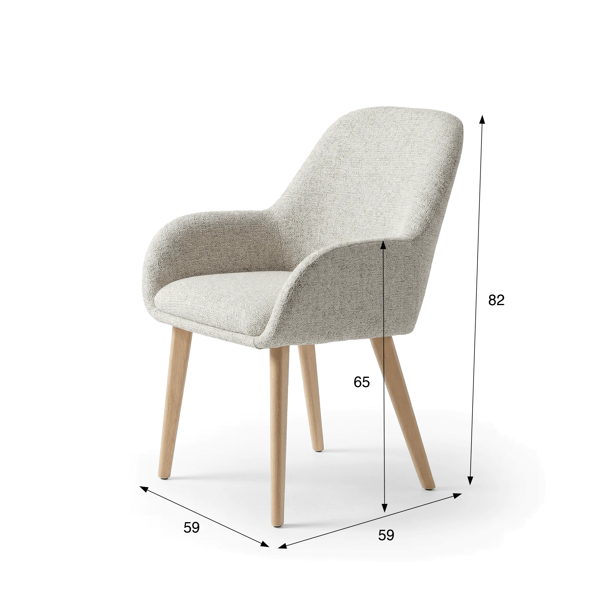 Der für den skandinavischen Esszimmerstuhl Alva aus Stoff ausgewählte Stoff besitzt eine fein strukturierte Haptik, die das Licht auf subtile Weise einfängt und seinem natürlichen Farbton Relief und Tiefe verleiht. Dieses Material ist zugleich strapazierfähig und angenehm im Kontakt, verstärkt das Gefühl von Komfort und bewahrt dabei eine schlichte, zeitlose Ästhetik. Wir haben uns dafür entschieden, diesen Bezug mit Beinen aus Buchenholz zu kombinieren, deren heller Farbton die nordische Inspiration des Modells unterstreicht. Der Kontrast zwischen der Textur des Stoffes und der Wärme des Massivholzes schafft ein harmonisches Gleichgewicht, ganz im Sinne der Alva-Kollektion.