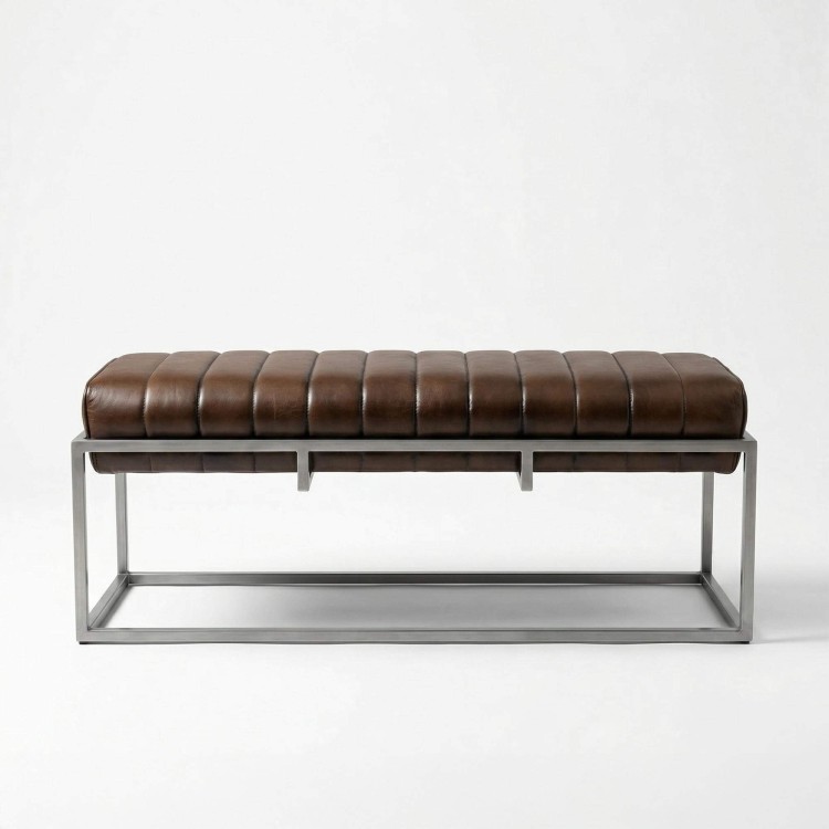 Vintage-Eingangsbank aus Echtleder und Metall - Norton