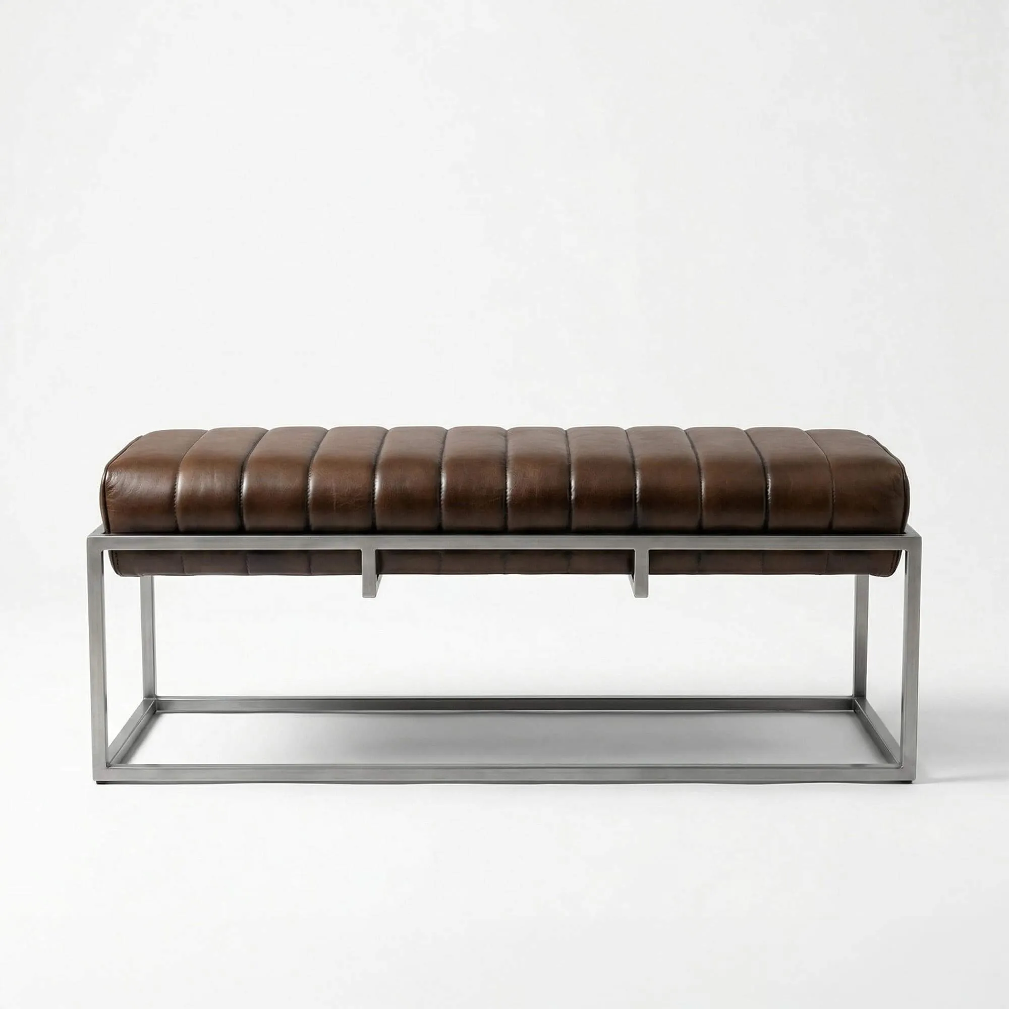 Das Gestell dieser Vintage-Garderobenbank aus Echtleder und Metall mit seinen klaren und ausgewogenen Linien bildet einen harmonischen Kontrast zur Weichheit des Leders. Es verleiht der Bank zuverlässige Stabilität und bewahrt zugleich eine optische Leichtigkeit. Unsere Designer haben besonders an den Proportionen gearbeitet, um eine angenehme Höhe und eine einladende Sitzfläche zu erzielen – ideal im Eingangsbereich, am Fußende eines Bettes oder im Wohnzimmer. Die Vintage-Garderobenbank Norton aus Echtleder und Metall wird bereits montiert geliefert und findet daher sofort ihren Platz, ganz ohne Montageaufwand.