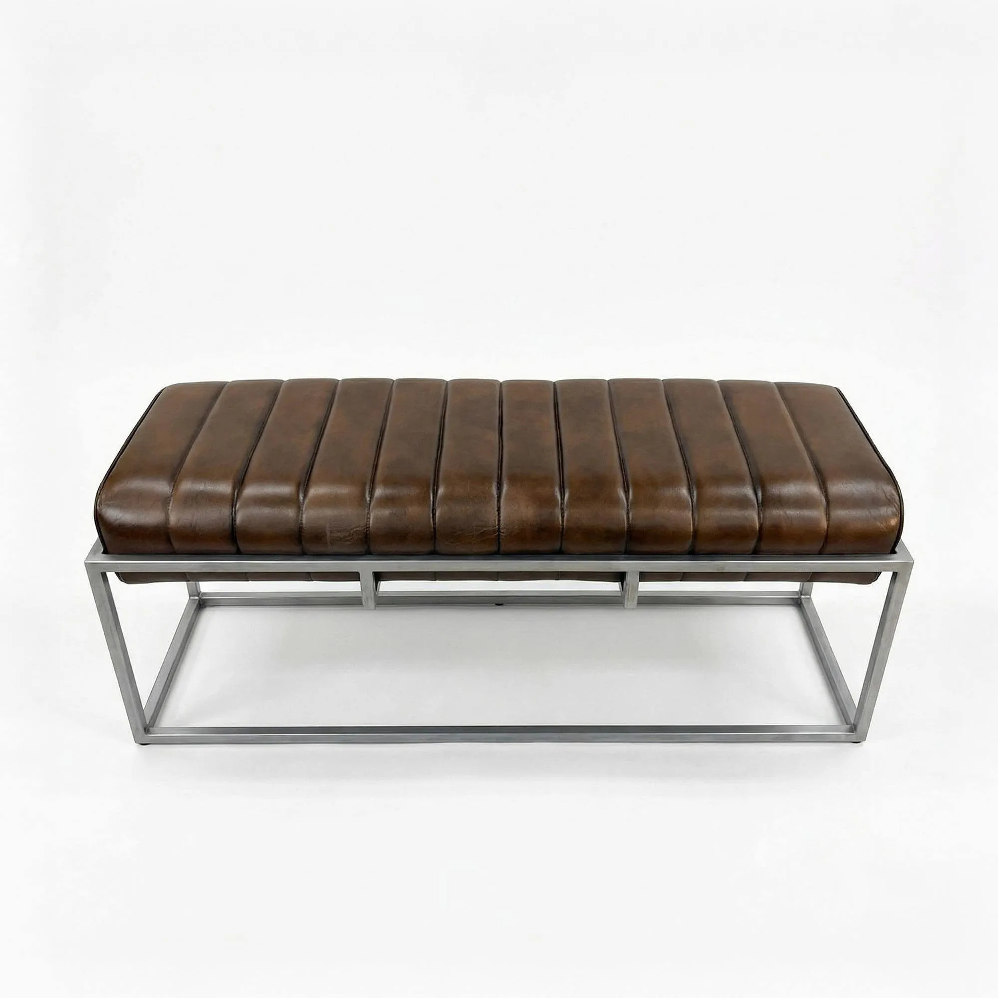 Mit der Vintage-Garderobenbank Norton aus Echtleder und Metall wollten wir den Geist des Vintage-Mobiliars in einem Möbelstück neu interpretieren, das zugleich einladend und klar strukturiert wirkt. Diese Garderobenbank wurde als Element konzipiert, das dem Raum Rhythmus verleiht und zugleich sofort ein Gefühl von Komfort vermittelt. Mit ihrer großzügigen Länge von 120 cm bietet sie mehreren Personen Platz oder schafft eine praktische Fläche, um Schuhe anzuziehen, eine Tasche abzulegen oder einige Dinge des Alltags griffbereit unterzubringen. So wird aus einem einfachen Durchgang ein funktionaler und angenehmer Ort.