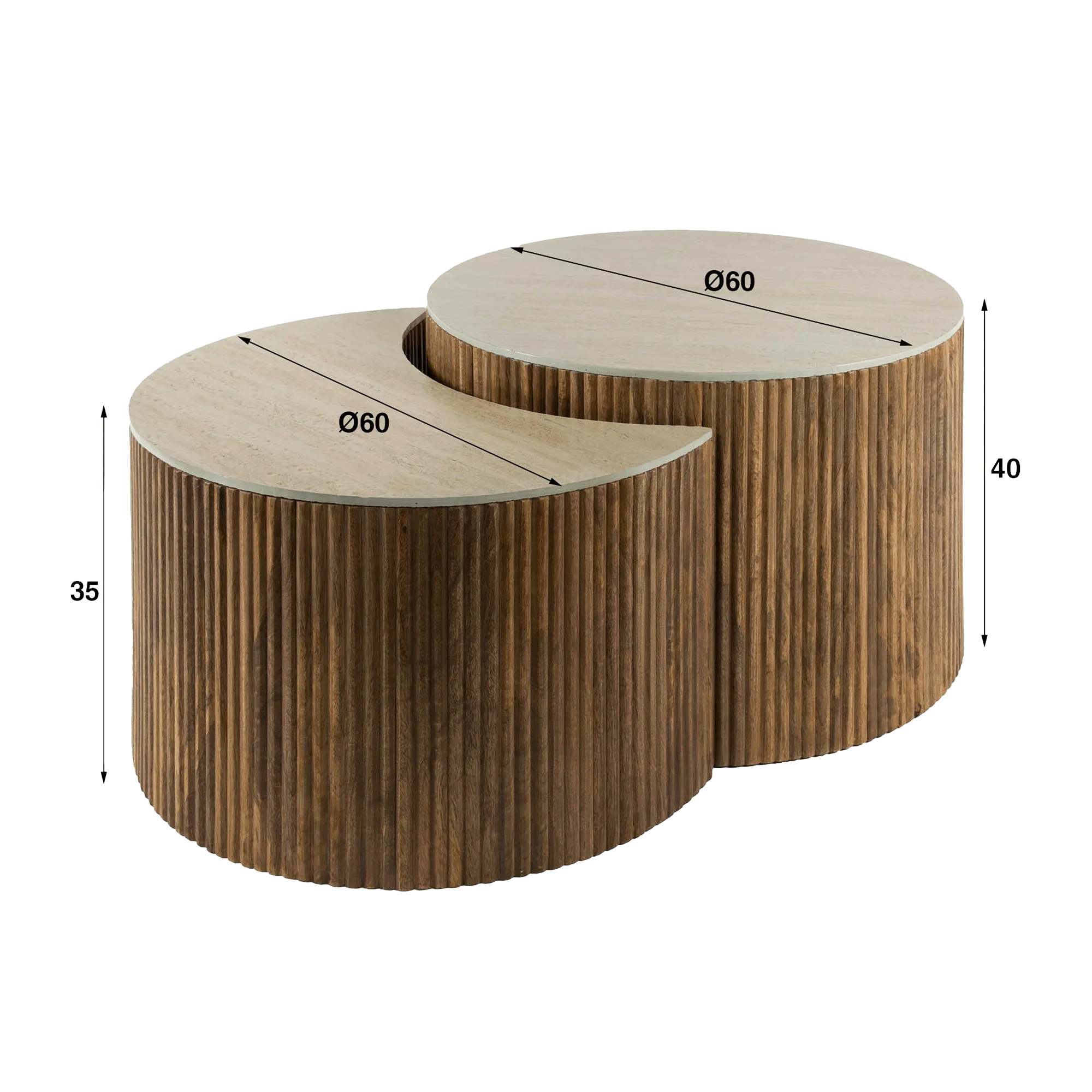 Halbrunder Couchtisch aus massivem Mangoholz (2er-Set) – Nuovo