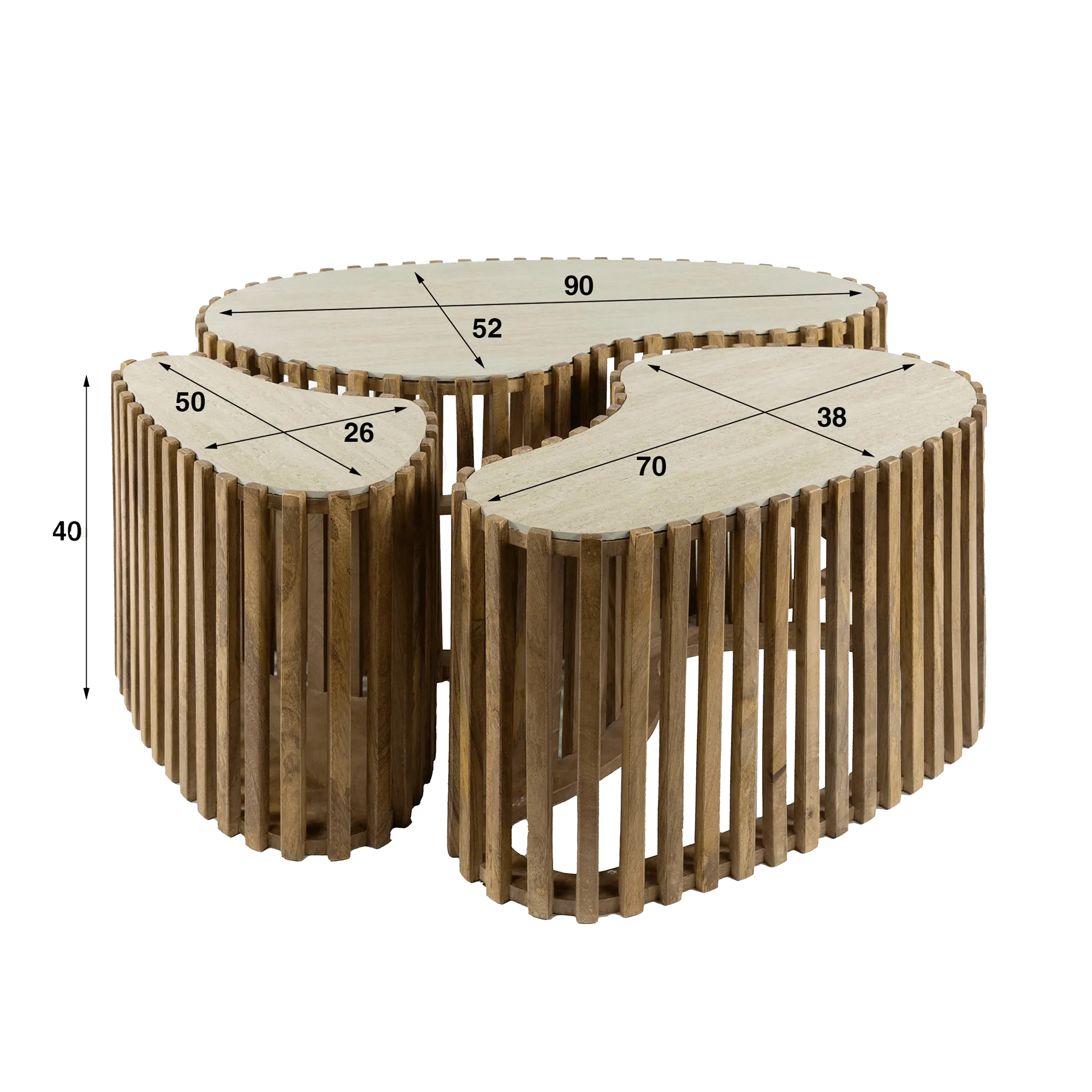 Halbrunder Couchtisch aus massivem Mangoholz (3er-Set) – Nuovo