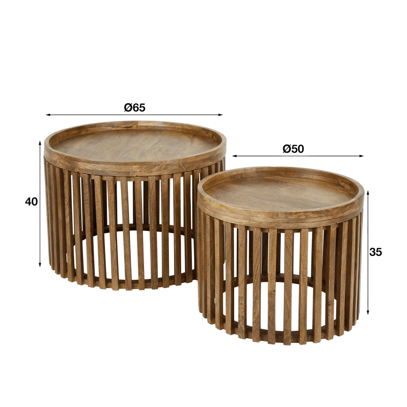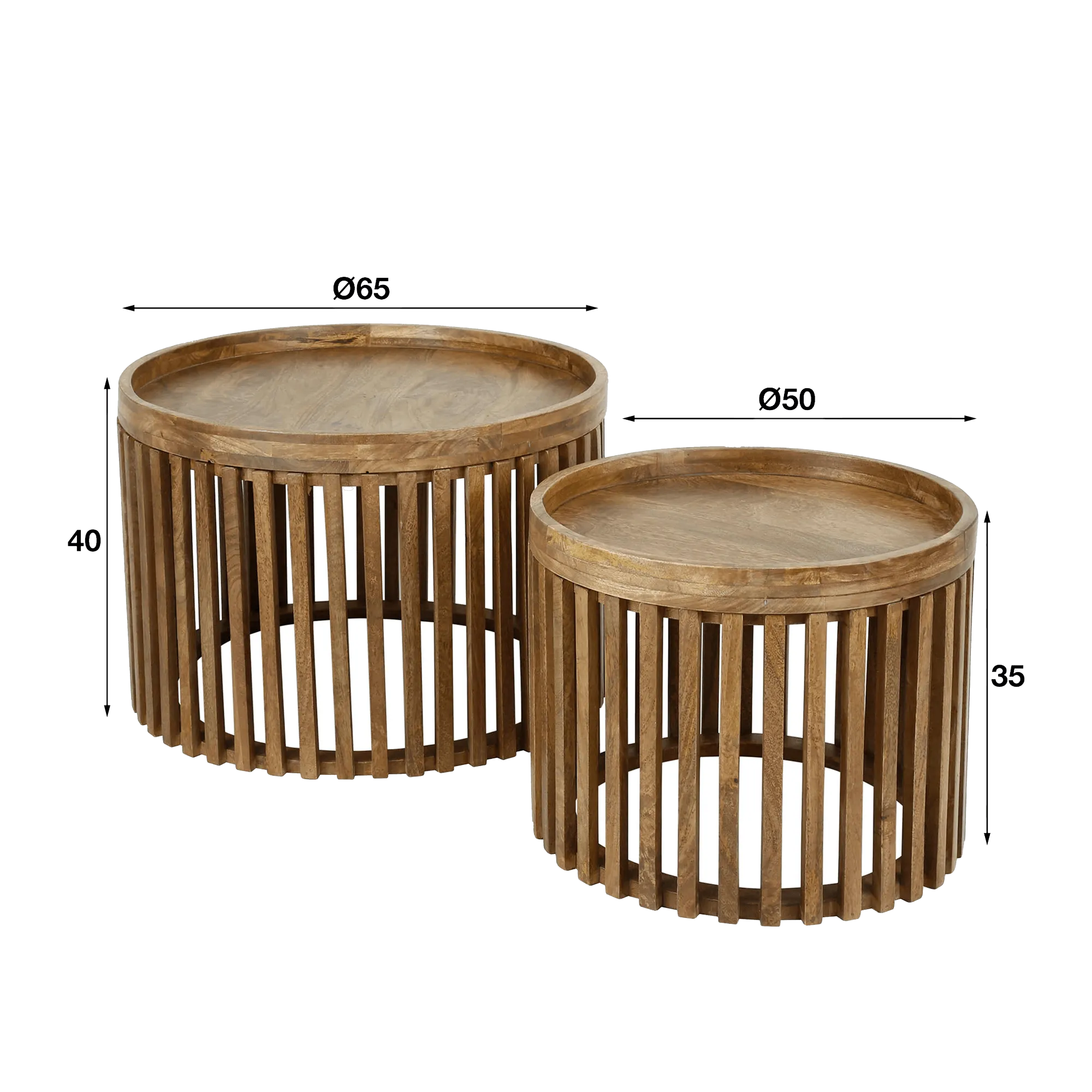 Runde Couchtische aus naturbelassenem Mangoholz (2er-Set) – Orbit