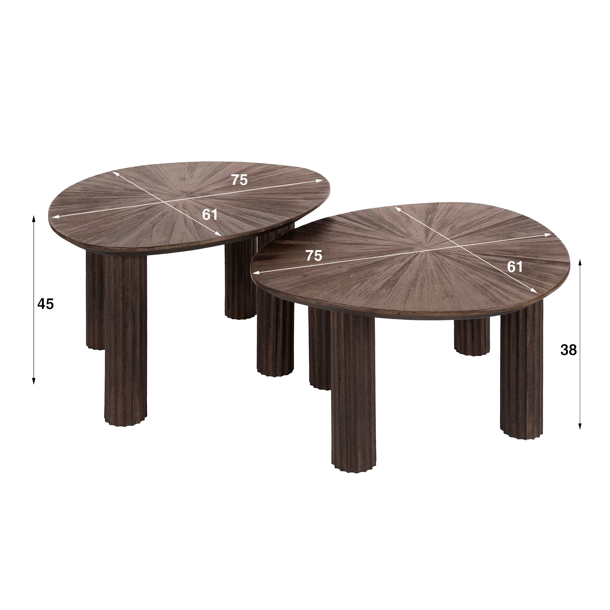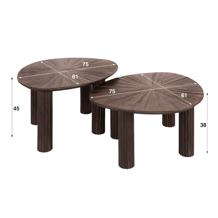 Couchtisch-Set aus braunem Teakholz (2er-Set) – Ovo