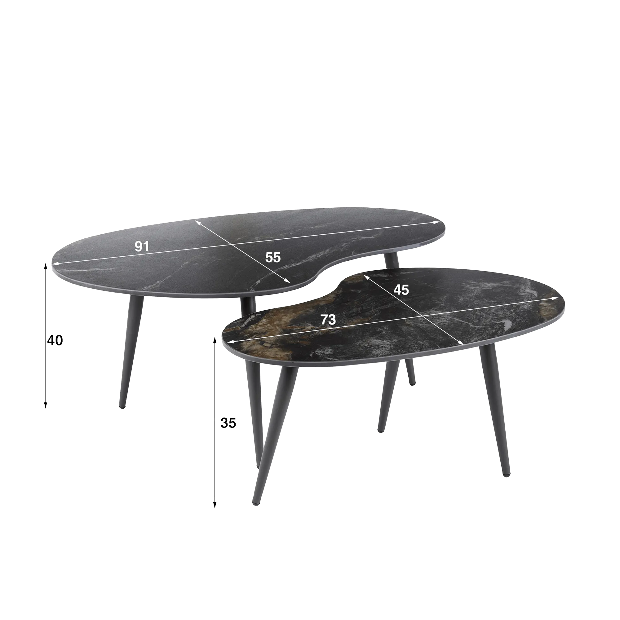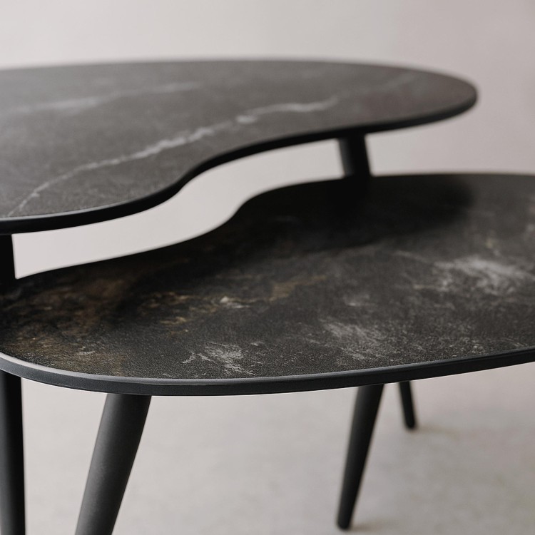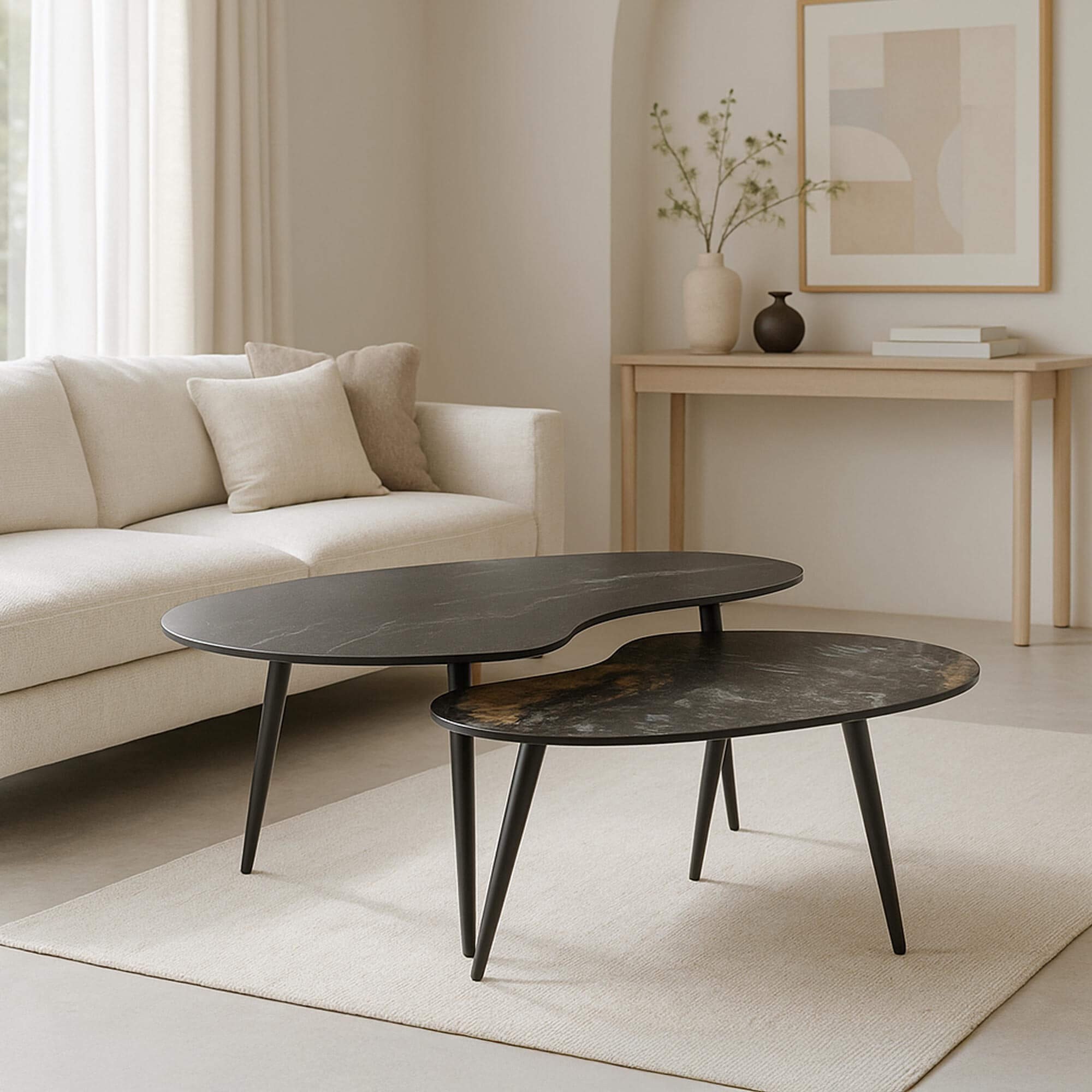 Set aus 2 organisch geformten Keramik-Couchtischen