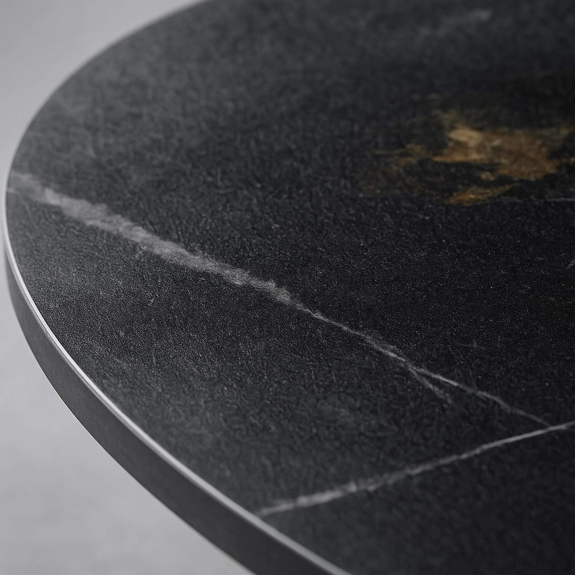 Unsere Designer haben dieses Set aus 2 organisch geformten Couchtischen aus Keramik als ein harmonisches Duo entworfen, das Tiefe und eine subtile Präsenz ins Zentrum des Wohnzimmers bringt. Wir wollten zwei Stücke schaffen, die miteinander in Dialog treten – nicht nur durch ihre von glatt geschliffenen Kieseln inspirierte organische Form, sondern auch durch den feinen Kontrast ihrer mineralischen Nuancen. Jede Tischplatte zeigt eine keramische Zeichnung mit dunklen Schattierungen, feinen Adern und wärmeren Partien, die je nach Tageslicht variieren und an die charakteristischen Linien von Marmor erinnern.