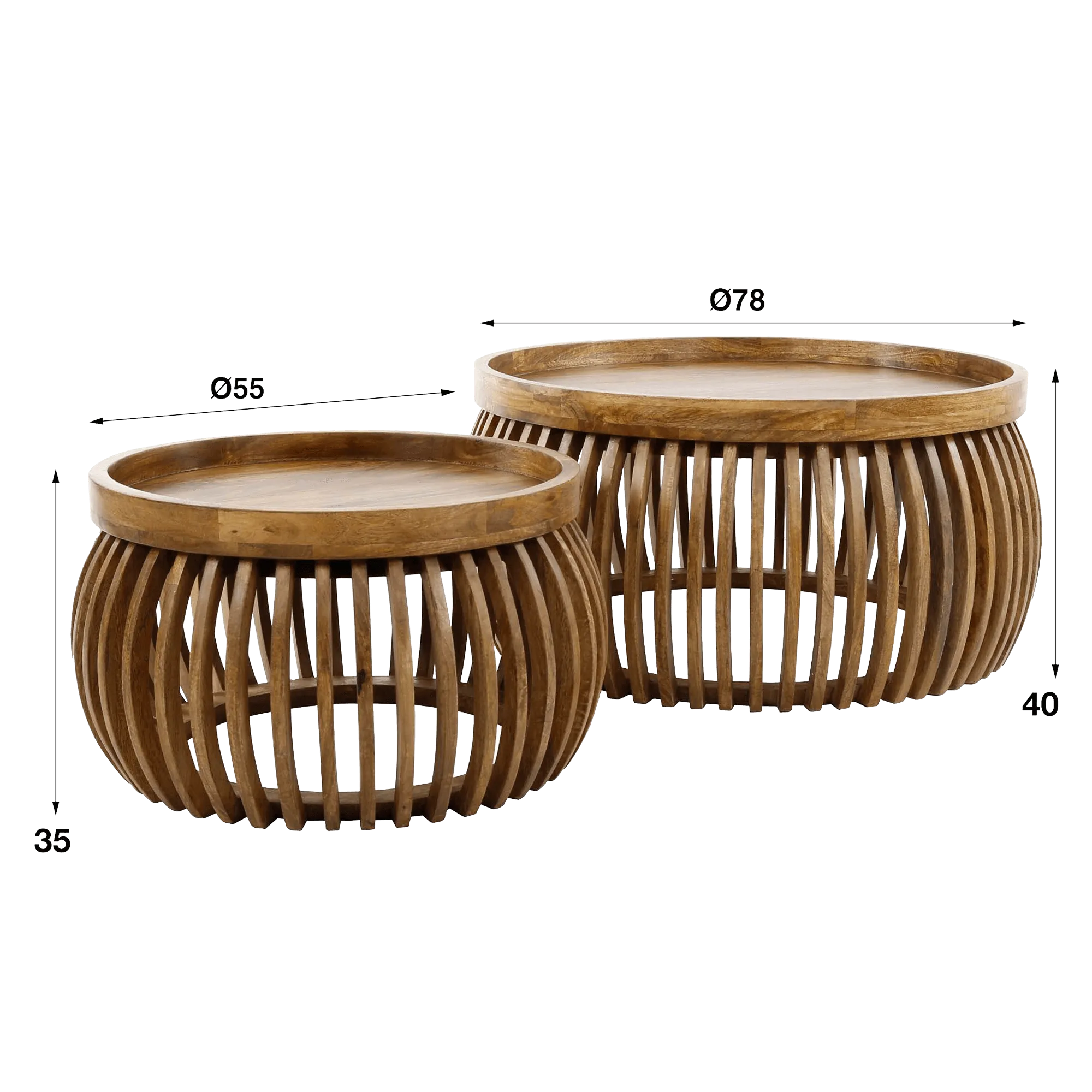Set aus 2 runden Couchtischen aus massivem Mangoholz – Orbit