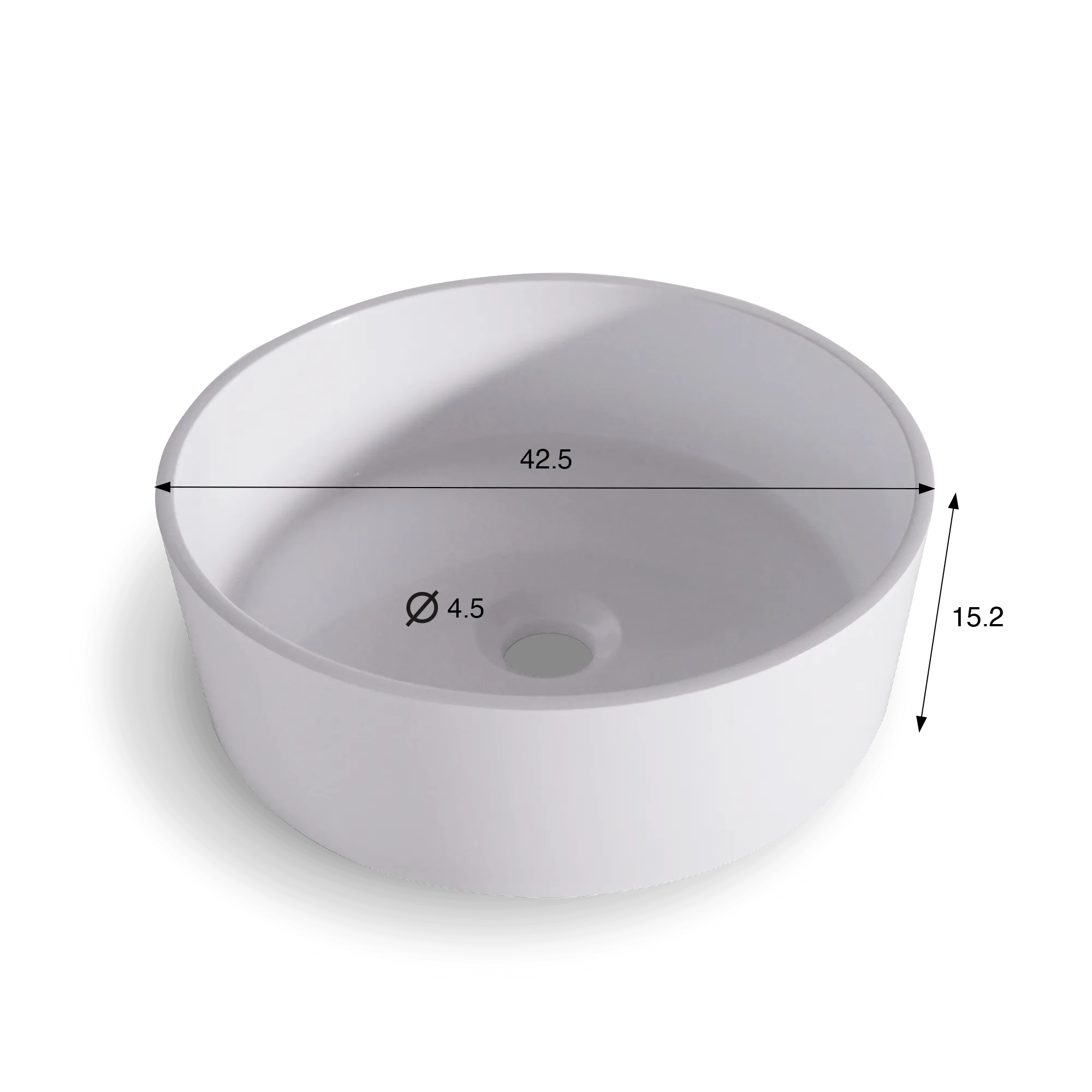 Die kreisförmigen Linien dieses runden Aufsatzbeckens aus Mineralguss, Mattweiß, wurden für eine natürliche Ergonomie entwickelt. Mit einem Außendurchmesser von ca. 35,6 cm und einem Innenbecken von 33,5 cm bietet es komfortablen Platz für tägliche Handgriffe, während die Höhe von 12,4 cm eine elegante Installation auf einem Waschtischunterschrank oder auf einer massiven Holzplatte ermöglicht. Die zentrale Bohrung mit dem Standarddurchmesser von 4,5 cm fügt sich dezent in das Gesamtbild ein und gewährleistet einen reibungslosen Ablauf.