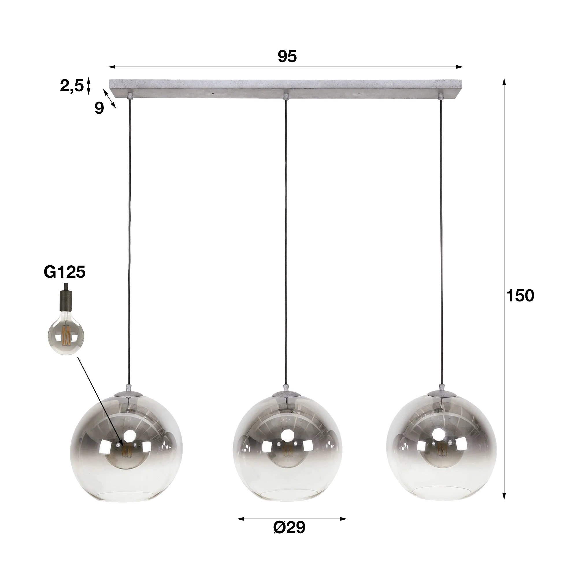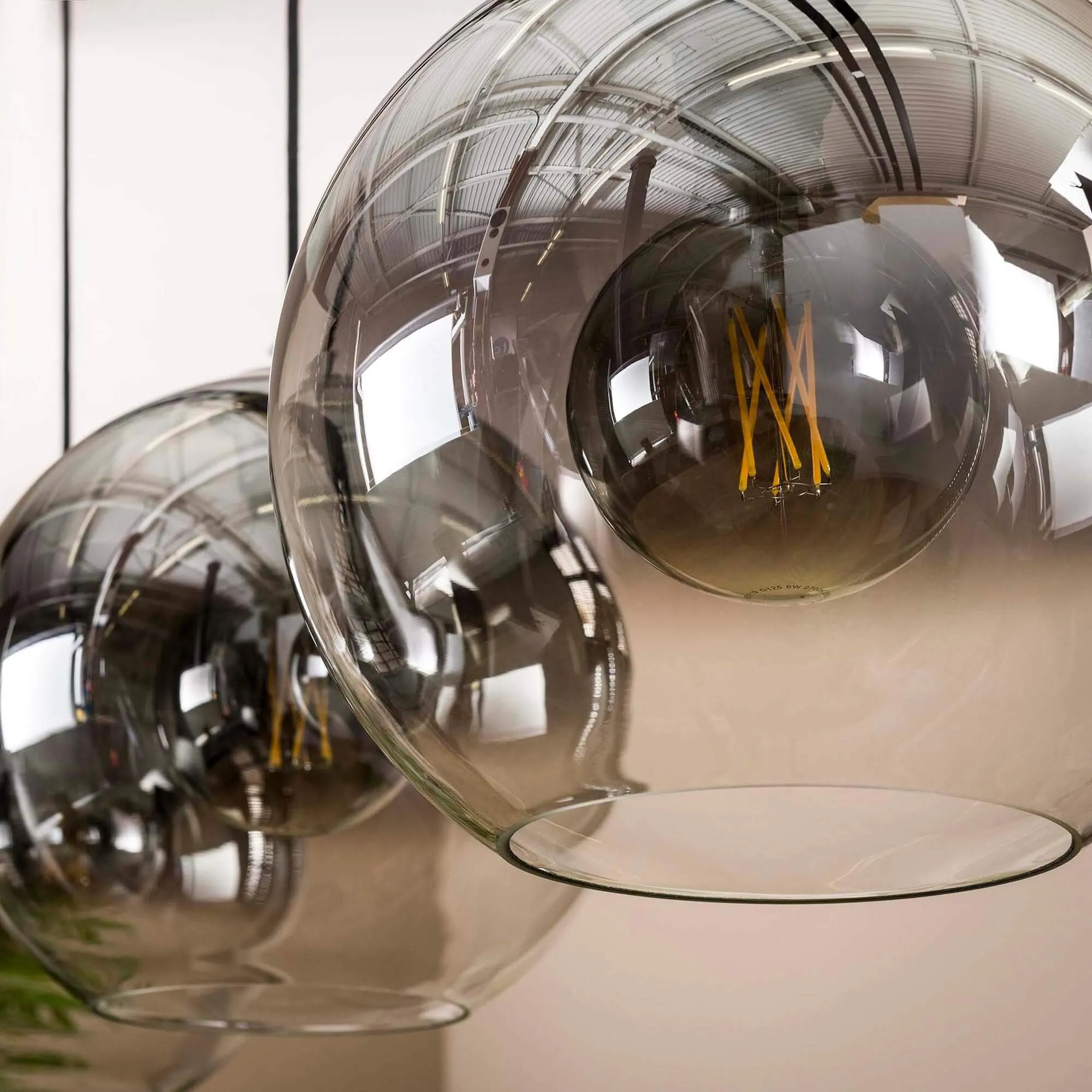 Die Glaspendelleuchte Bubble besteht aus drei fein getönten Glaskugeln. Tagsüber fängt sie das Umgebungslicht ein und verwandelt es, sobald sie eingeschaltet ist, in eine warme und einladende Atmosphäre. Das sorgfältig geformte Glas offenbart je nach Blickwinkel und Lichtintensität wechselnde Nuancen und bietet so immer neue Facetten des Leuchtendesigns. Jede Kugel dieser Glaspendelleuchte hat einen Durchmesser von etwa 29 cm – ein großzügiges Maß, das das Gesamtbild harmonisch ausbalanciert, ohne den Raum zu beschweren.