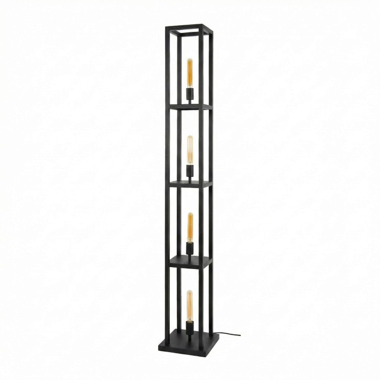 Mit der Stehlampe aus Metall mit LED-Beleuchtung im industriellen Stil Strukt suchten unsere Designer nach einem äußerst schlichten Lichtausdruck, gedacht für zeitgenössische Innenräume, mit einer dezenten, aber stark grafischen Präsenz. Ihre vertikale Struktur mit einer Höhe von 163 cm besteht aus vier offenen Modulen, die den Raum in einem beruhigenden Rhythmus gliedern. Jede Ebene nimmt eine T32-L185-Glühbirne (nicht enthalten) auf, sorgfältig positioniert, um eine kontinuierliche Linie aus warmem, sanftem Licht zu erzeugen.