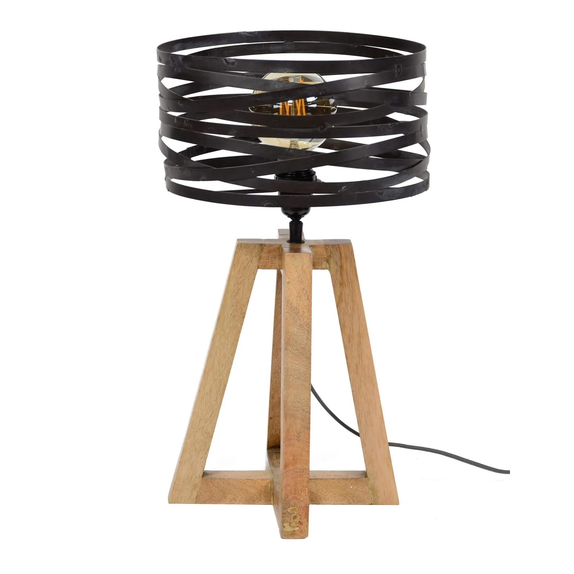 Industrielle Schreibtischlampe aus Holz mit gedrehtem Metallschirm – Twist