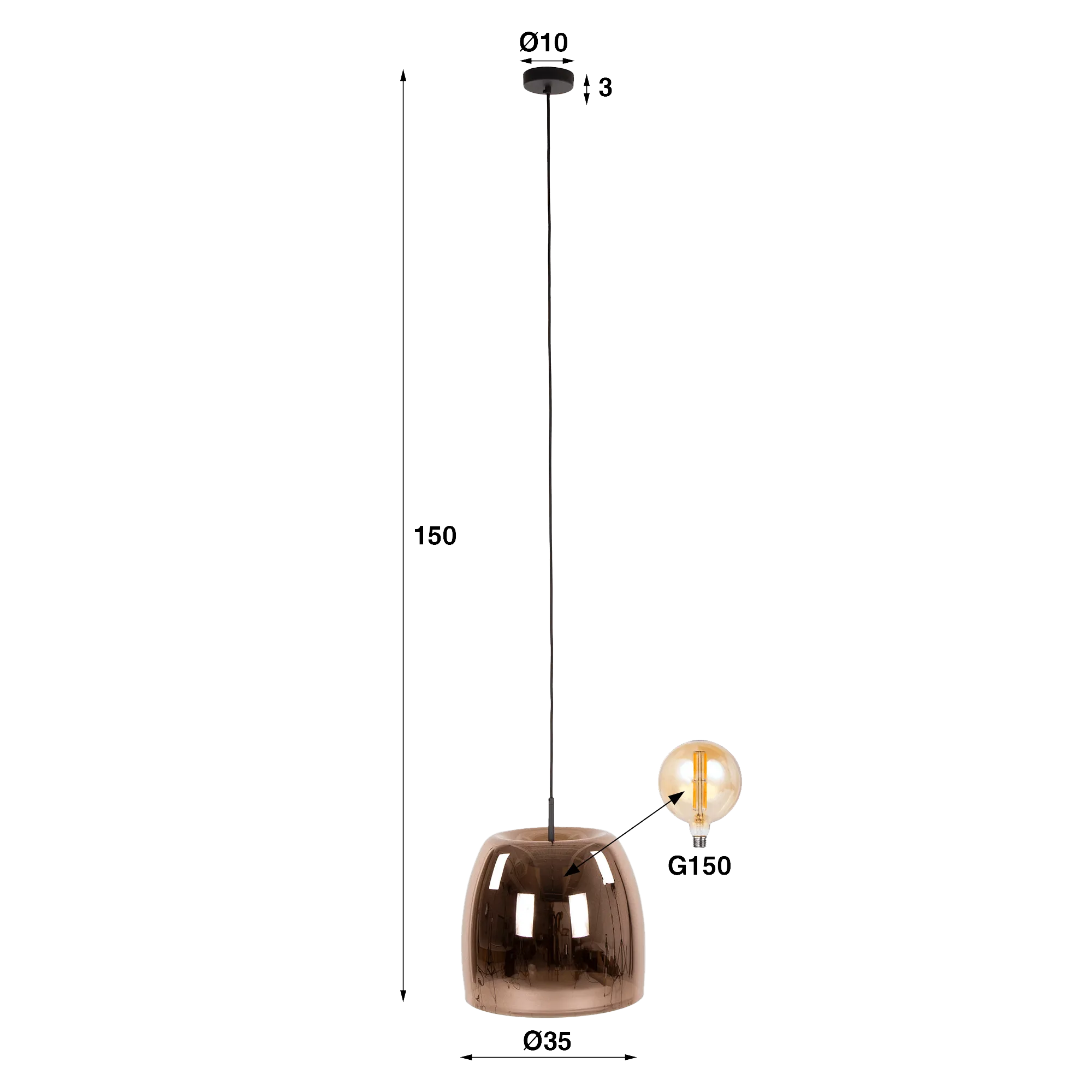 Hängelampe mit kupferfarbenem Glasschirm – Opala