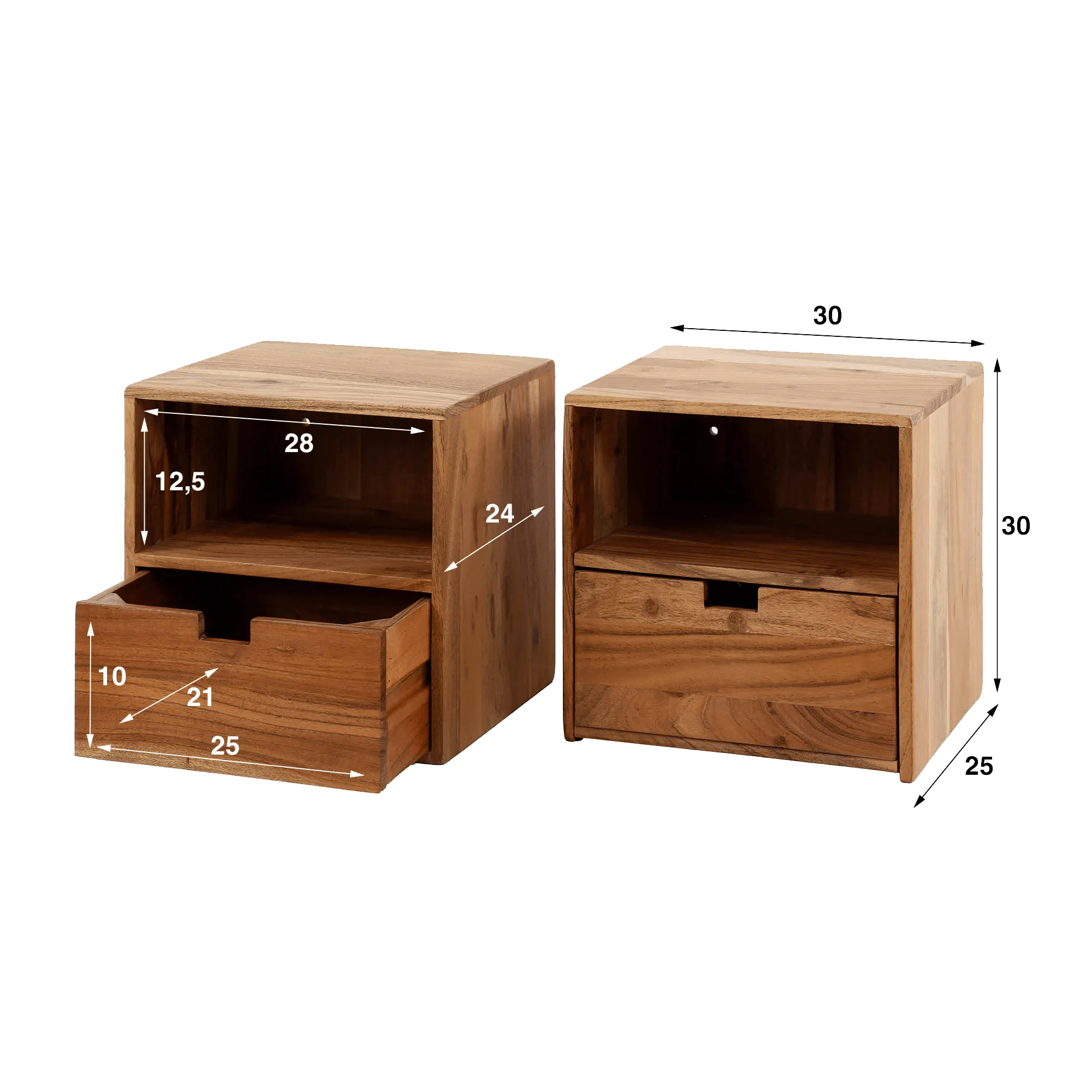 Hängender Nachttisch aus Massivholz (2er-Set) – Flat XS