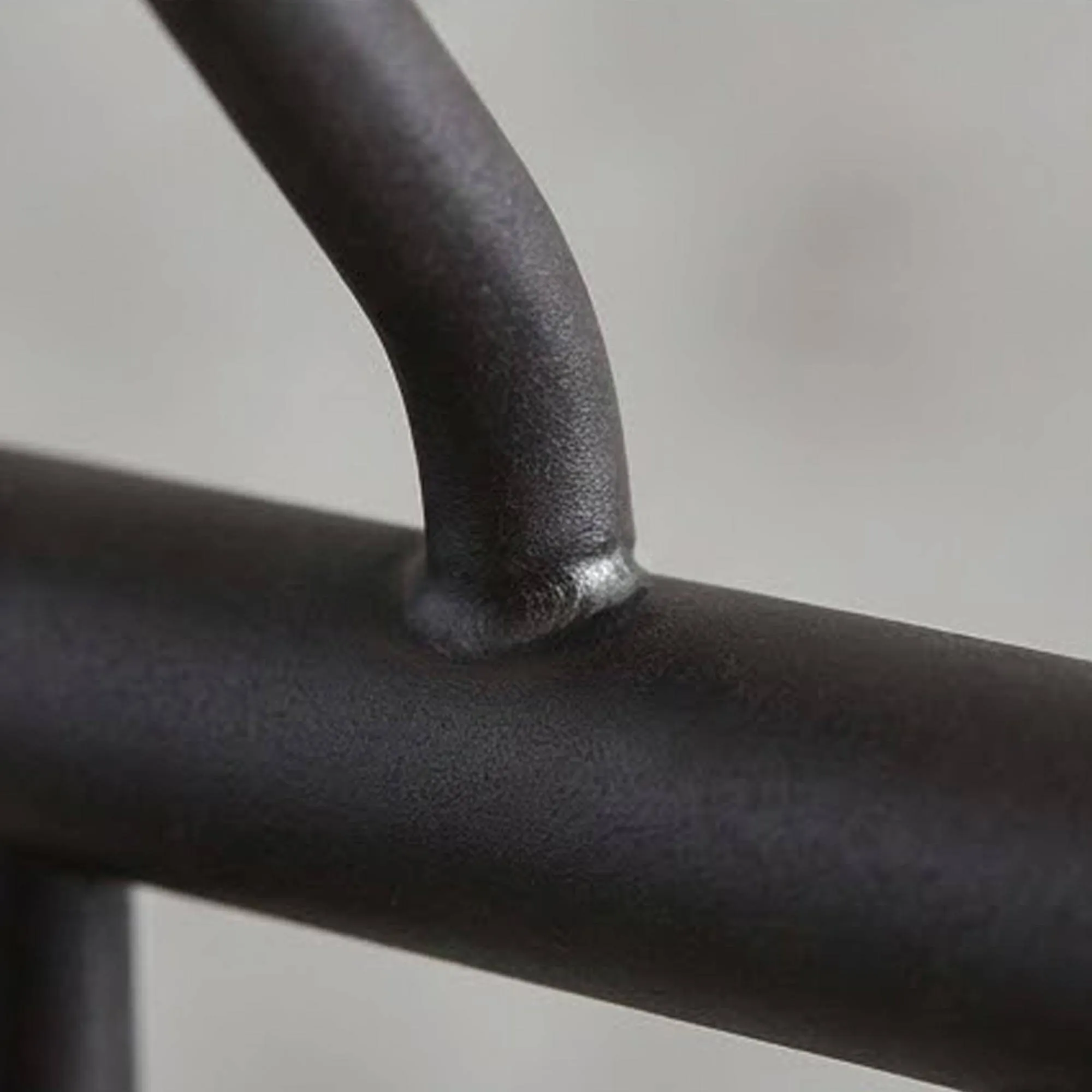 Diese industrielle Wandgarderobe aus Metall lässt sich ideal mit unseren Konsolen und Bänken aus Massivholz kombinieren. Gemeinsam entsteht eine harmonische Komposition, die die Stärke des Metalls mit der Wärme des Holzes verbindet – für einen Empfang, der zugleich praktisch und elegant ist.