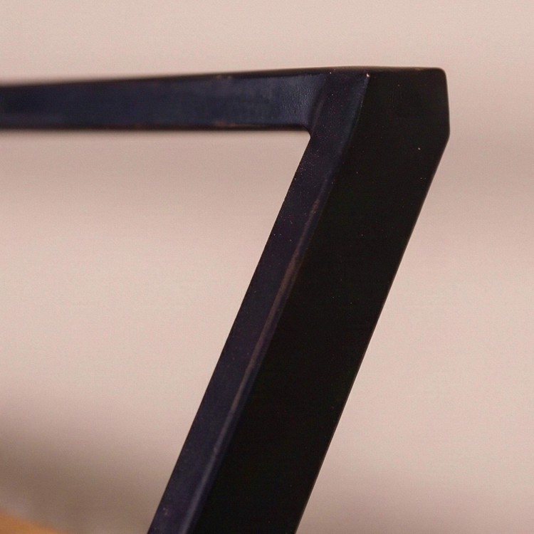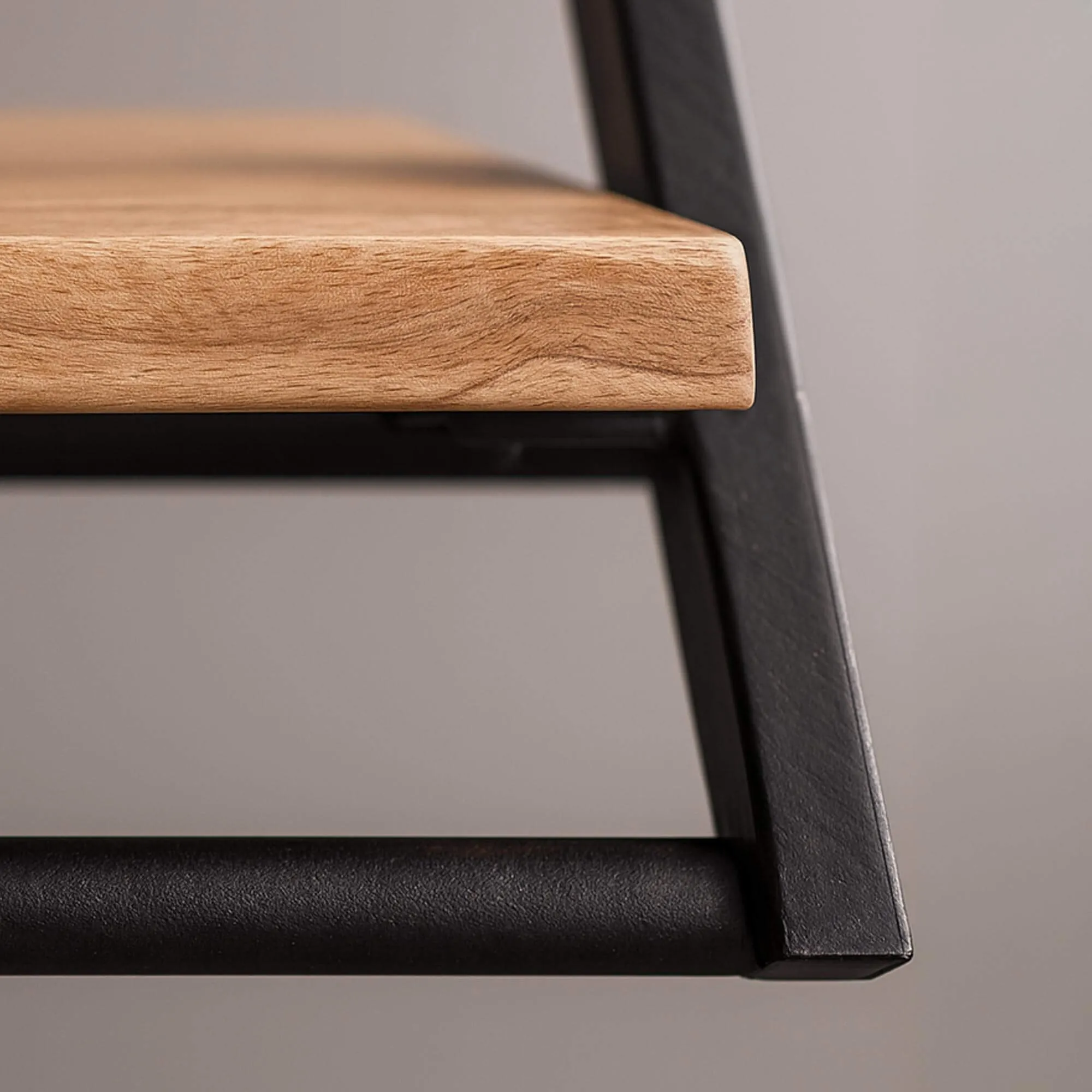 Die schwarze Metallstruktur dieser Wandgarderobe mit Massivholzablage zeichnet eine geneigte Silhouette, die der Wand einen besonderen visuellen Rhythmus verleiht. Dieses Spiel der Linien, inspiriert sowohl vom industriellen Stil als auch von einer eher bohèmehaften Ästhetik, verleiht der Lean Wandgarderobe trotz ihrer robusten Konstruktion eine leichte Anmutung. Bewusst haben wir mit schlanken Profilen und präzise ausgearbeiteten Winkeln gearbeitet, sodass die Struktur zu schweben scheint und gleichzeitig eine ausgezeichnete Stabilität nach der Montage gewährleistet.