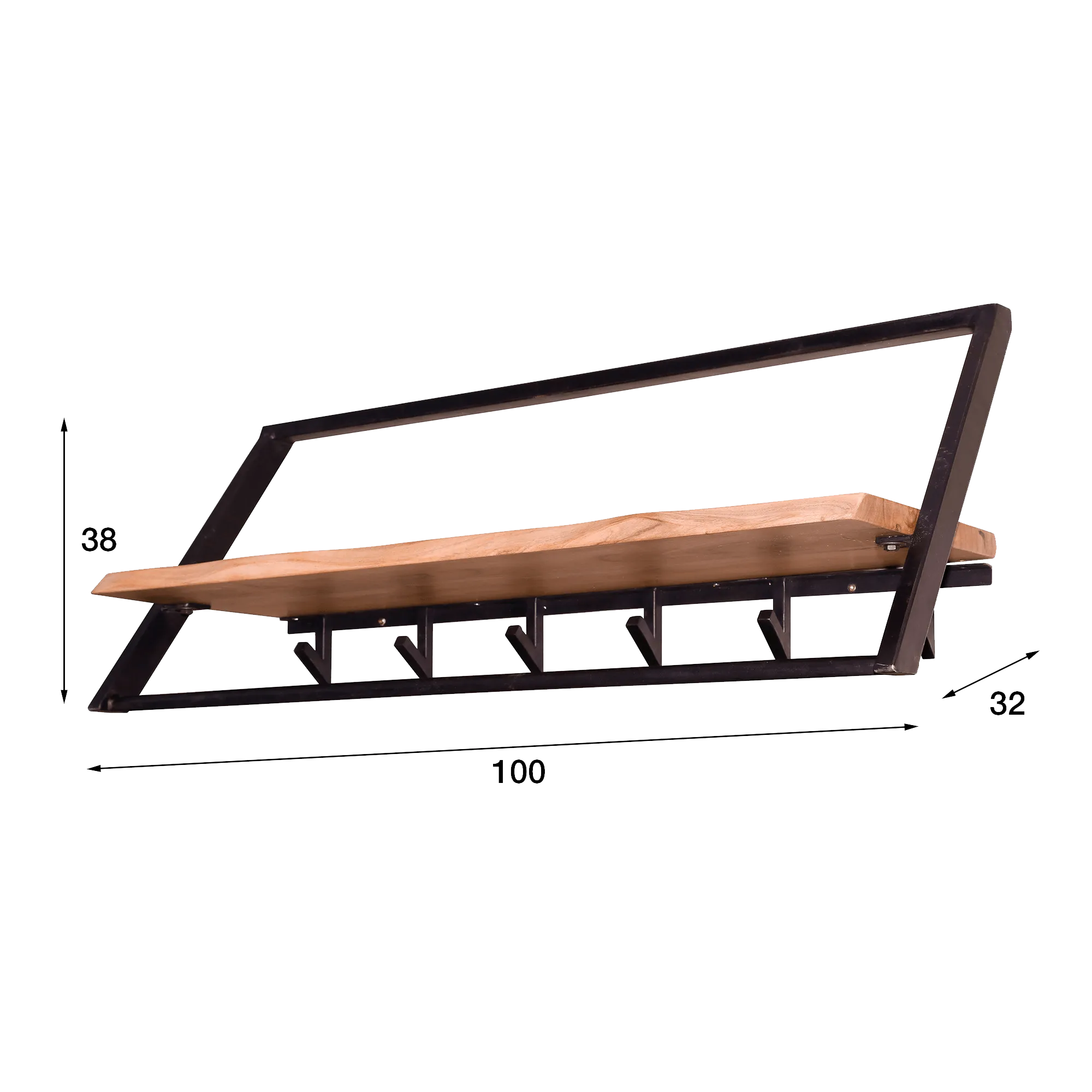 Wandgarderobe aus Metall mit Ablage aus Massivholz – Lean