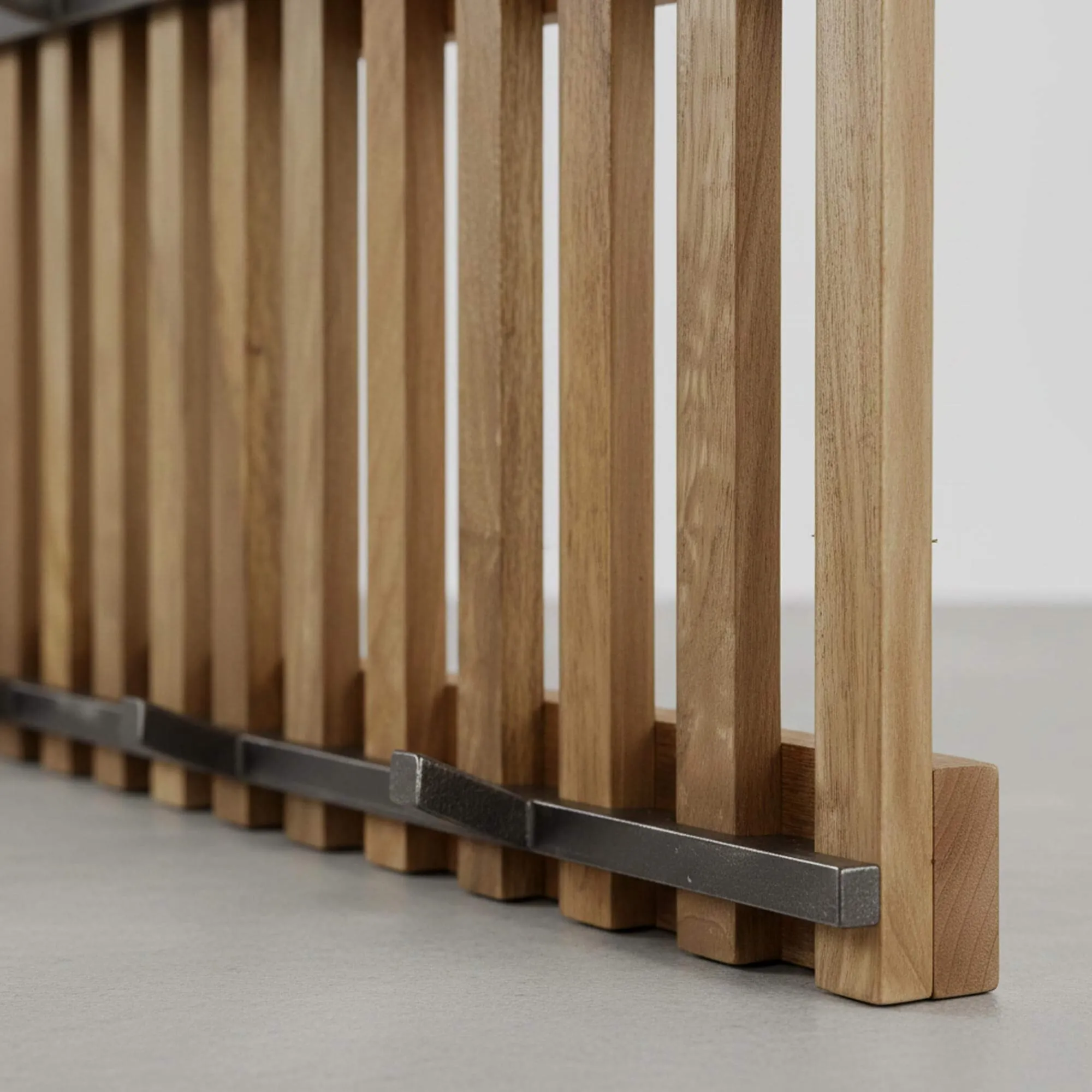 Gefertigt aus massivem Mangoholz, besticht die Wandgarderobe Tweak durch die natürliche Wärme ihrer Maserung und die Tiefe ihrer Farbtöne, die durch eine sorgfältige Oberflächenveredelung subtil hervorgehoben werden. Die vertikalen, regelmäßig angeordneten Holzleisten erzeugen einen eleganten visuellen Rhythmus und verleihen dem Gesamtbild zugleich eine leichte Anmutung. Auf dieser Holzstruktur sind Metallhaken mit bewusst roher Optik befestigt, deren leicht körnige Oberfläche einen spannenden Kontrast zur weicheren Haptik des Holzes bildet. Dieser Materialdialog steht im Zentrum der Identität dieser Kollektion.