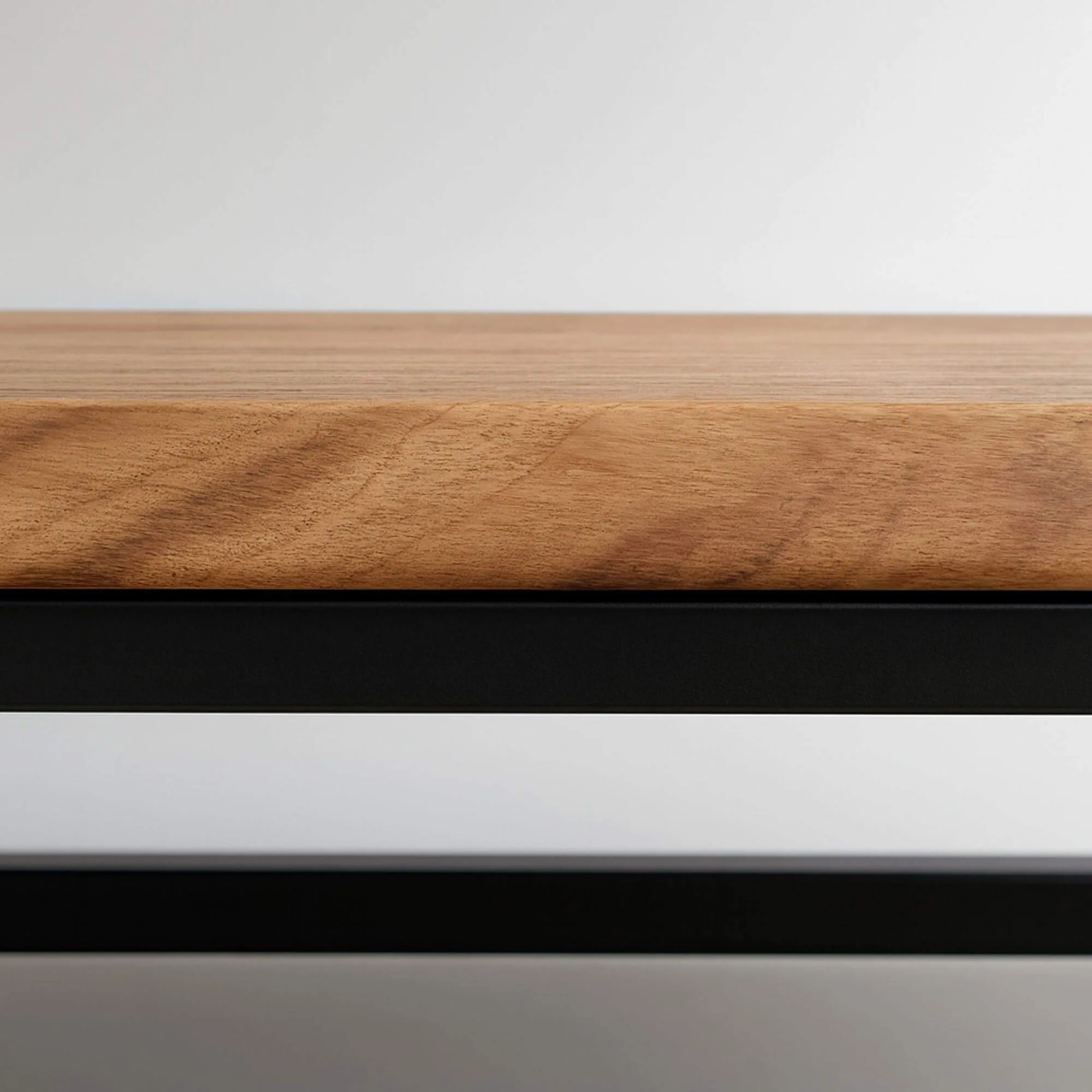 Was an dieser industriellen Wandgarderobe aus Holz und Metall sofort ins Auge fällt, ist das ausgewogene Zusammenspiel der Materialien. Das obere Plateau aus massivem Akazienholz, etwa 100 cm lang, zeigt eine lebendige Maserung und natürliche Nuancen, die das Licht subtil einfangen. Die angenehme Haptik und die sorgfältige Verarbeitung erinnern an das handwerkliche Können, das wir schätzen und bei dem jedes Stück seine eigene Einzigartigkeit bewahrt. Im Kontrast dazu verleiht die Struktur aus schwarzem Metall dem Design eine klare grafische Linie, inspiriert von industriellen Werkstätten und modern interpretiert, was dem Ensemble Rhythmus und Charakter verleiht.