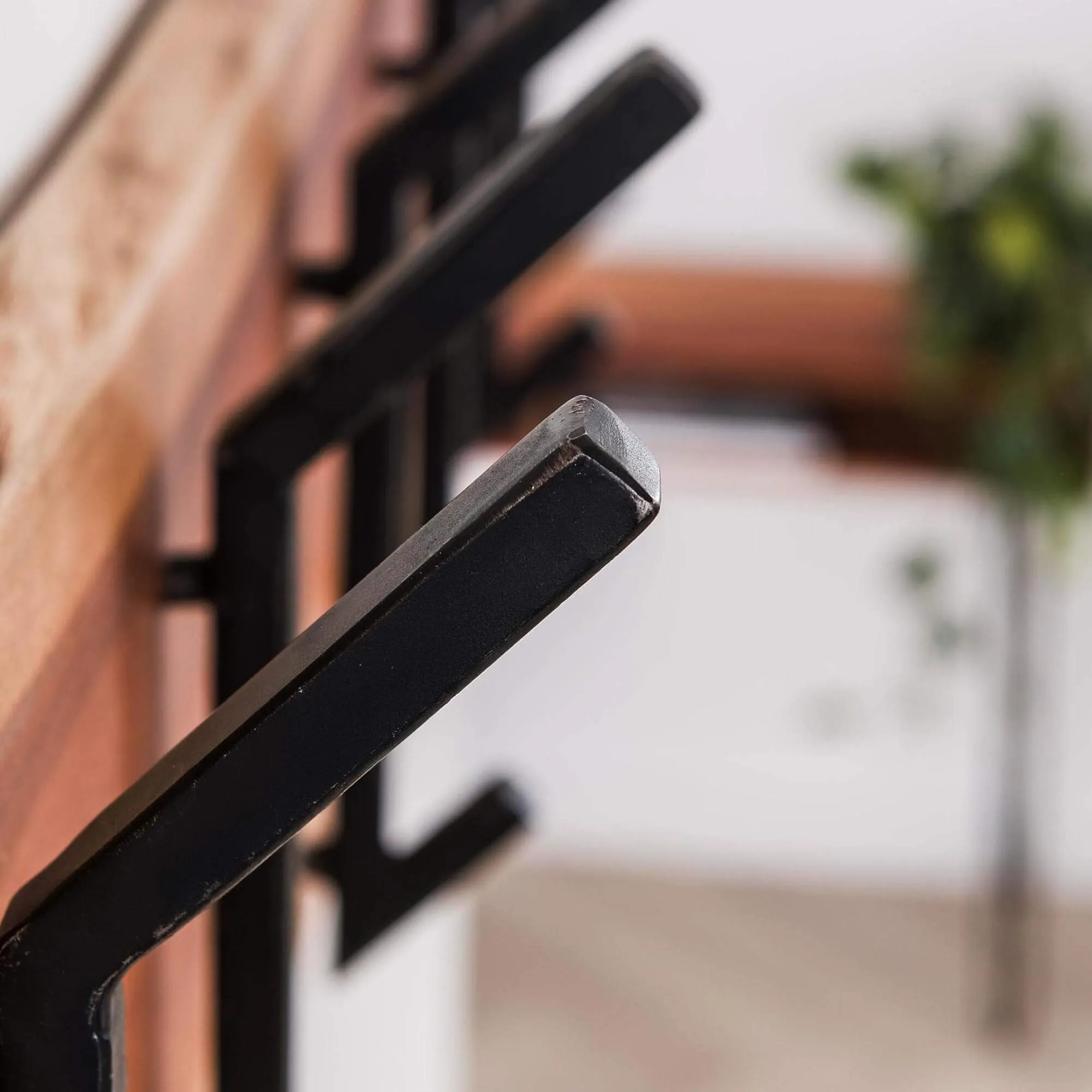 Die zwölf schwarzen Metallhaken, verteilt auf zwei Reihen zu je sechs, verleihen dieser Wandgarderobe aus massivem Akazienholz eine klare, grafische Struktur. Ihr bewusst markantes, kantiges Design steht im Dialog mit der Weichheit des Holzes und erinnert an den industriellen Stil, der uns inspiriert. Stabil und großzügig über eine Länge von etwa 100 cm verteilt, bieten sie Platz für Mäntel, Jacken, Taschen oder Schals, ohne sich gegenseitig zu behindern, und ermöglichen eine übersichtliche Organisation im Alltag. Mit einer Höhe von rund 30 cm schafft die Garderobe ein ausgewogenes Verhältnis zwischen Präsenz und Zurückhaltung, während die Stärke des Holzes das Gefühl von Robustheit unterstreicht.