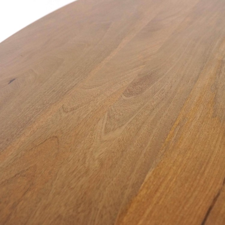 Die Tischplatte aus Mangoholz dieses ovalen Esstisches aus Massivholz mit Mikado-Gestell aus Metall offenbart ein lebendiges Material mit warmen Nuancen und feinen Maserungen, die das Licht je nach Tageszeit unterschiedlich einfangen. Die seidig weiche Haptik, erzielt durch sorgfältiges Schleifen und eine präzise Verarbeitung, lädt ganz selbstverständlich zum gemeinsamen Essen ein. Erhältlich in zwei großzügigen Formaten, 180 x 90 cm oder 220 x 100 cm, bietet sie eine komfortable Fläche für den Alltag ebenso wie für gesellige Runden, während die Bewegungsfreiheit rund um den Tisch erhalten bleibt.