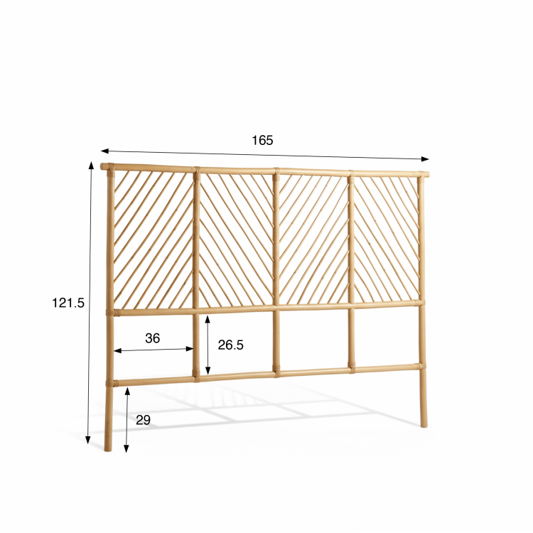 Mit seiner Breite von 160 cm eignet sich das Manoa Kopfteil aus Rattan (160 cm) ideal für Doppelbetten in Standardgröße und strukturiert den Schlafbereich auf harmonische Weise. Die Gesamthöhe von 121,5 cm schafft einen klaren visuellen Ankerpunkt, bleibt dabei jedoch ausgewogen, um eine luftige Atmosphäre zu bewahren. Die vertikalen Pfosten, verbunden durch sorgfältig montierte Querstreben, sorgen für dauerhafte Stabilität und täglichen Komfort – sei es zum Anlehnen beim Lesen oder zur Unterstützung von Kissen.