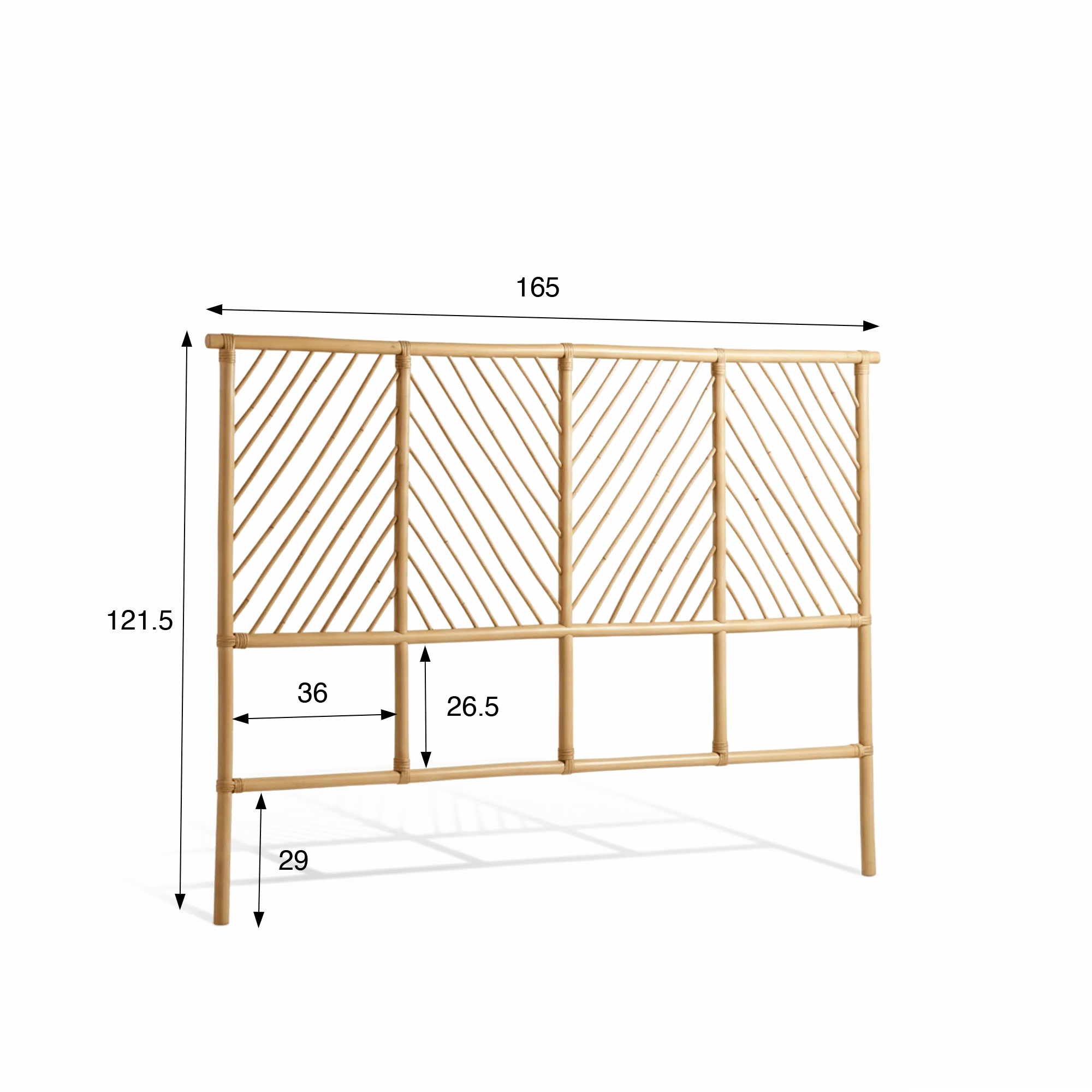 Wir haben dieses Kopfteil aus Rattan (160 cm) als vielseitig integrierbares Möbelstück entworfen: für ein helles Schlafzimmer in natürlichen Farbtönen, ein bohèmes Interieur mit authentischen Materialien oder ein reduziertes Ambiente, in dem Rattan Wärme und Struktur verleiht. Das Manoa Kopfteil aus Rattan (160 cm) wird bereits montiert geliefert und ermöglicht es, die Atmosphäre des Schlafzimmers mit nur einem Handgriff zu verändern.