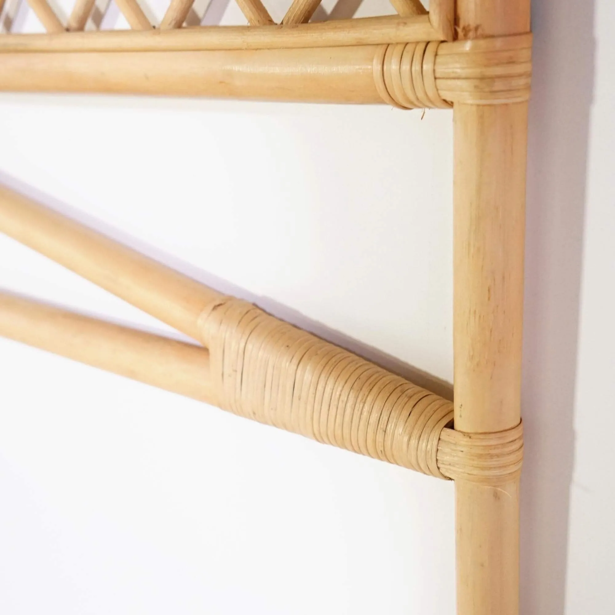 Das Rattan, das dieses 160 cm breite Kopfteil aus Rattan strukturiert, wird sorgfältig ausgewählt und von Hand nach handwerklichen Techniken verarbeitet, zu denen wir uns bewusst bekennen. Jede Stange wird gebogen, zusammengesetzt und präzise angepasst, um eine durchgehende und harmonische Linie zu erzielen. Das rautenförmige Flechtmuster verleiht dem Ganzen Rhythmus, während die leicht abgerundeten Pfosten die Silhouette sanfter wirken lassen. Besonderes Augenmerk wurde auf die Verarbeitung gelegt: Die dezenten, aber robusten Verbindungen verstärken die Struktur und unterstreichen zugleich das handwerkliche Können hinter jedem Detail.