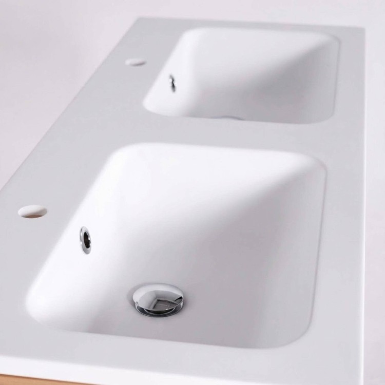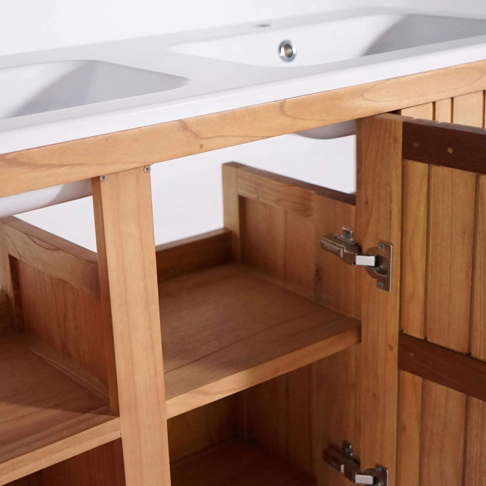 Badmöbel mit Doppelwaschbecken aus Massivholz, matt weiß – Satya