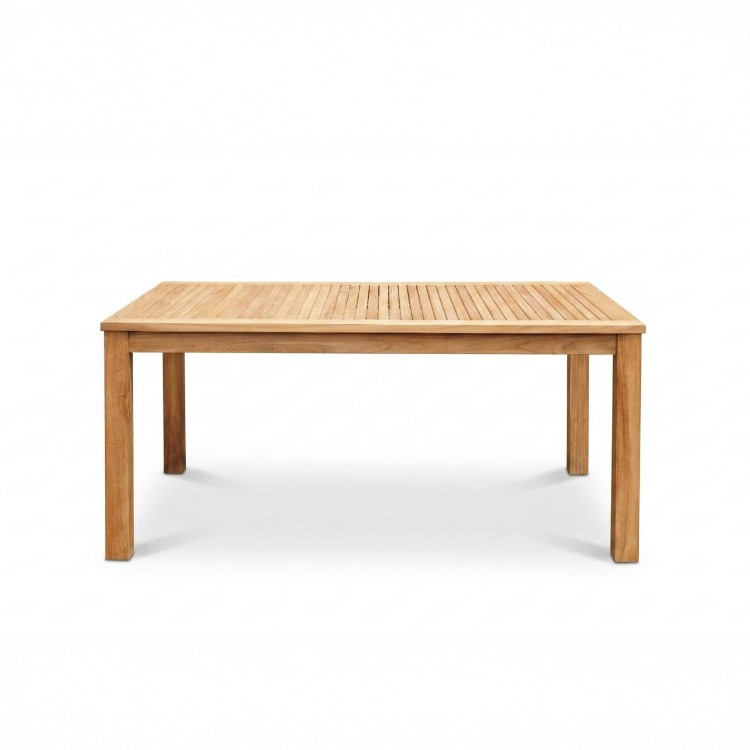 Die Tischplatte dieses Gartentischs aus Teakholz für 4 Personen, die aus feinen, sorgfältig ausgerichteten Latten besteht, vermittelt einen dezenten Rhythmus, der dem Gesamtbild Struktur und optische Leichtigkeit verleiht. Diese sorgfältige Verarbeitung ermöglicht zudem, dass Wasser auf natürliche Weise ablaufen kann – ein Detail, das zur Langlebigkeit des Möbelstücks im Laufe der Jahreszeiten beiträgt. Dank ihrer ausgewogenen Proportionen bietet sie vier Personen bequem Platz und schafft einen geselligen Bereich, ohne die Gestaltung der Terrasse oder des Gartens zu beschweren.
