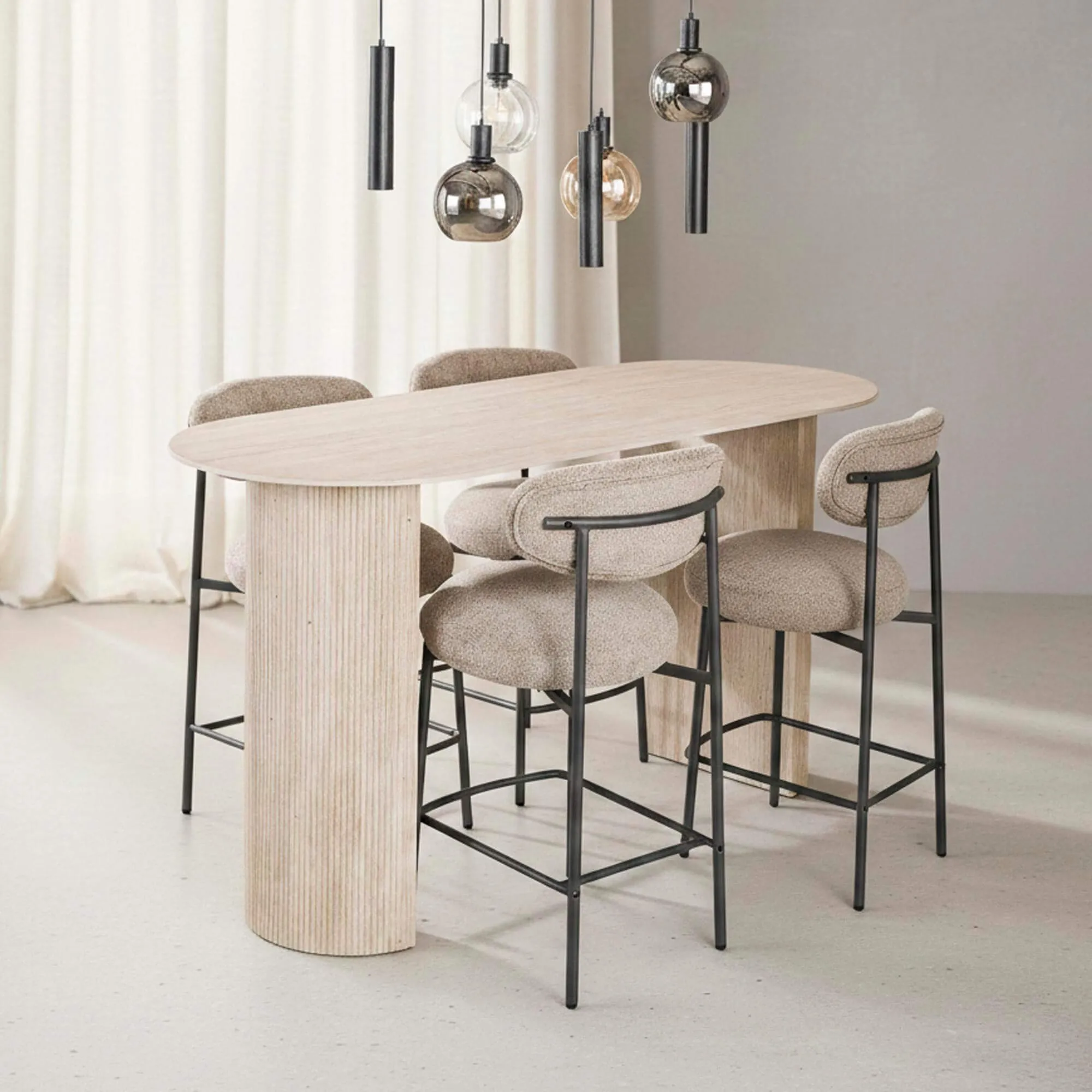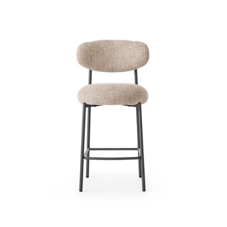 Die Silhouette unseres Küchenbarstuhls für Kücheninsel Kai zeichnet sich durch sanfte, harmonische Proportionen aus. Die großzügige Sitzfläche und die dezent gerundete Rückenlehne bieten angenehmen Halt – konzipiert, um längere Tischmomente ohne Einschränkung zu genießen. Der Stoff, ausgewählt für seine Widerstandsfähigkeit und seine angenehme Haptik, fängt das Licht feinfühlig ein und verleiht eine warme, ruhige Ausstrahlung. Seine leicht körnige Textur verstärkt den Eindruck von dauerhaftem Komfort und bleibt dabei im Alltag unkompliziert.