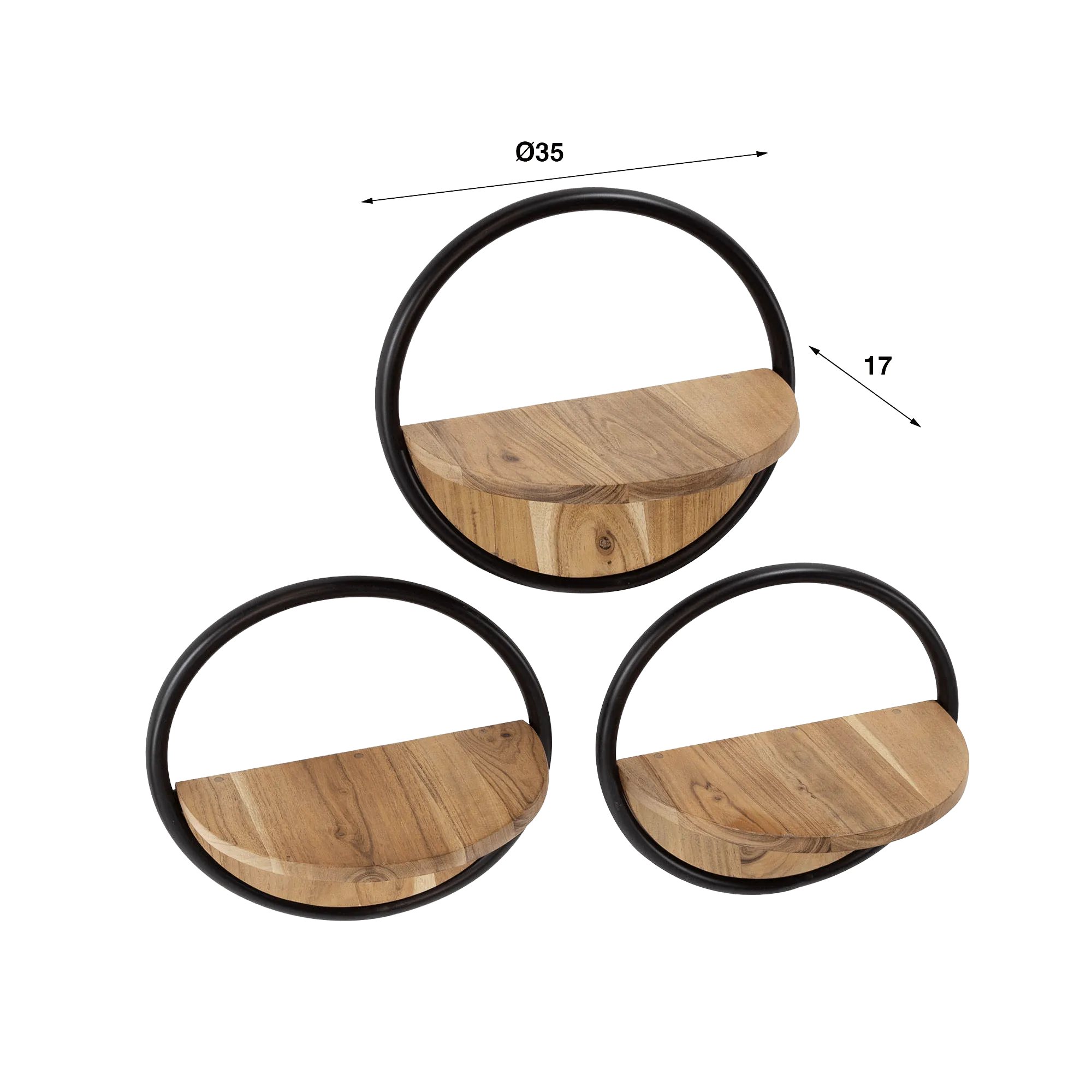 Mit diesem runden industriellen Wandregal mit Holzablage im 3er-Set wollten wir ein Möbelstück schaffen, das zugleich dekorativ und langlebig ist – ganz im Sinne des Qualitätsanspruchs, der jede unserer Kreationen leitet und den Charakter dieses Neuzugangs definiert.