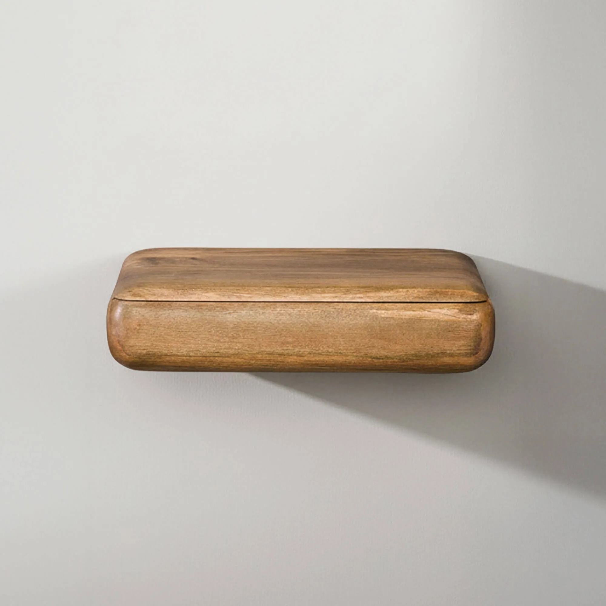 Gefertigt aus massivem Mangoholz, zeigt der hängende Nachttisch aus Massivholz mit Schublade Elia die ganze natürliche Ausdruckskraft dieser Holzart: lebendige Maserung, warme Nuancen und eine leicht satinierte Haptik dank einer sorgfältigen, von Hand ausgeführten Oberfläche. Besonderes Augenmerk haben wir auf die abgerundeten Kanten und die Materialübergänge gelegt, um eine weiche, ausgewogene Silhouette zu schaffen — ganz im Sinne des natürlichen und boho-inspirierten Charakters von Elia. Jedes Stück wirkt dadurch authentisch und ist dafür gemacht, über Jahre hinweg zeitlos zu bleiben.