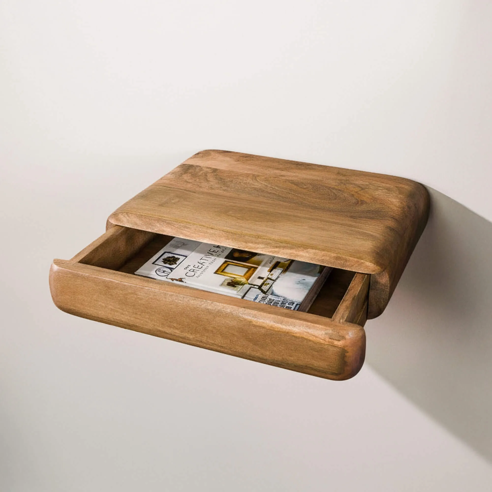 Hängender Nachttisch aus Massivholz mit Schublade – Elia