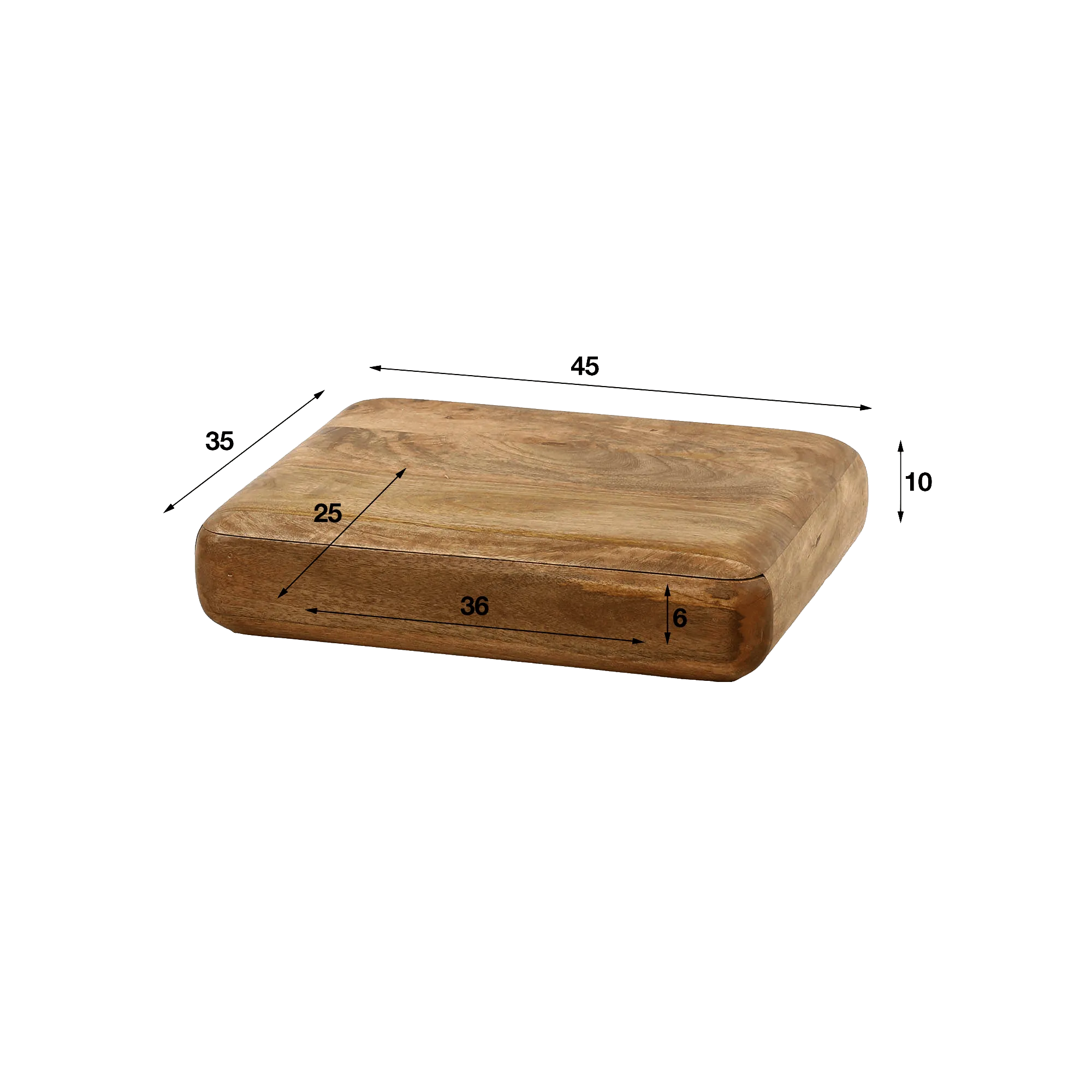Mit Maßen von etwa 45 cm Breite, 35 cm Tiefe und 10 cm Höhe fügt sich dieser hängende Nachttisch aus Massivholz mit Schublade sowohl in kompakte Schlafzimmer als auch in großzügigere Räume mühelos ein. Die Schublade, dezent und zugleich sehr praktisch, bietet einen nutzbaren Innenraum von rund 36 cm Breite, ca. 25 cm Tiefe und 6 cm Höhe — ideal, um Buch, Brille oder persönliche Gegenstände griffbereit zu verstauen, ohne die Ablagefläche zu überladen.