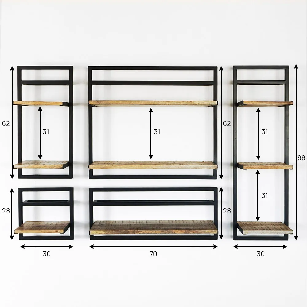Mit einer Tiefe von 25 cm sind die Regale aus Mangoholz ideal, um verschiedene dekorative Gegenstände wie Bücher, Pflanzen, Sammlerstücke, Fotorahmen usw. auszustellen.