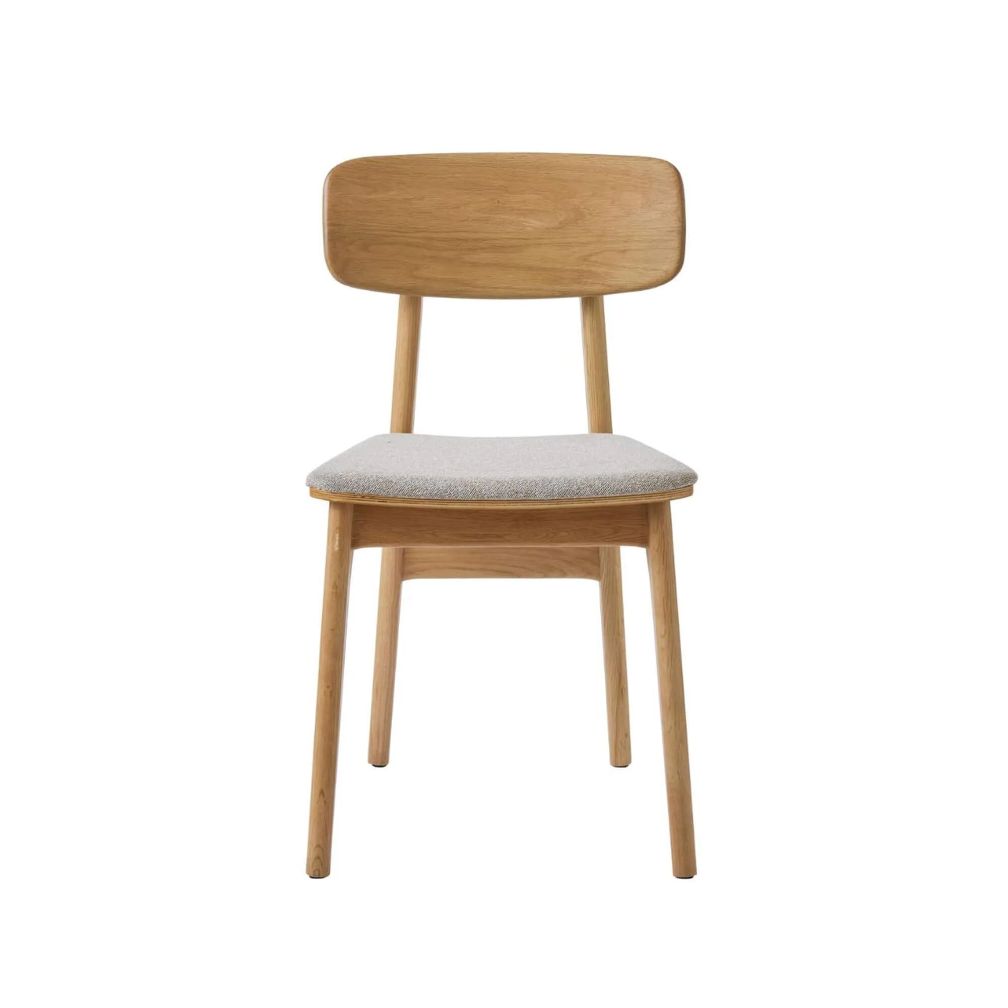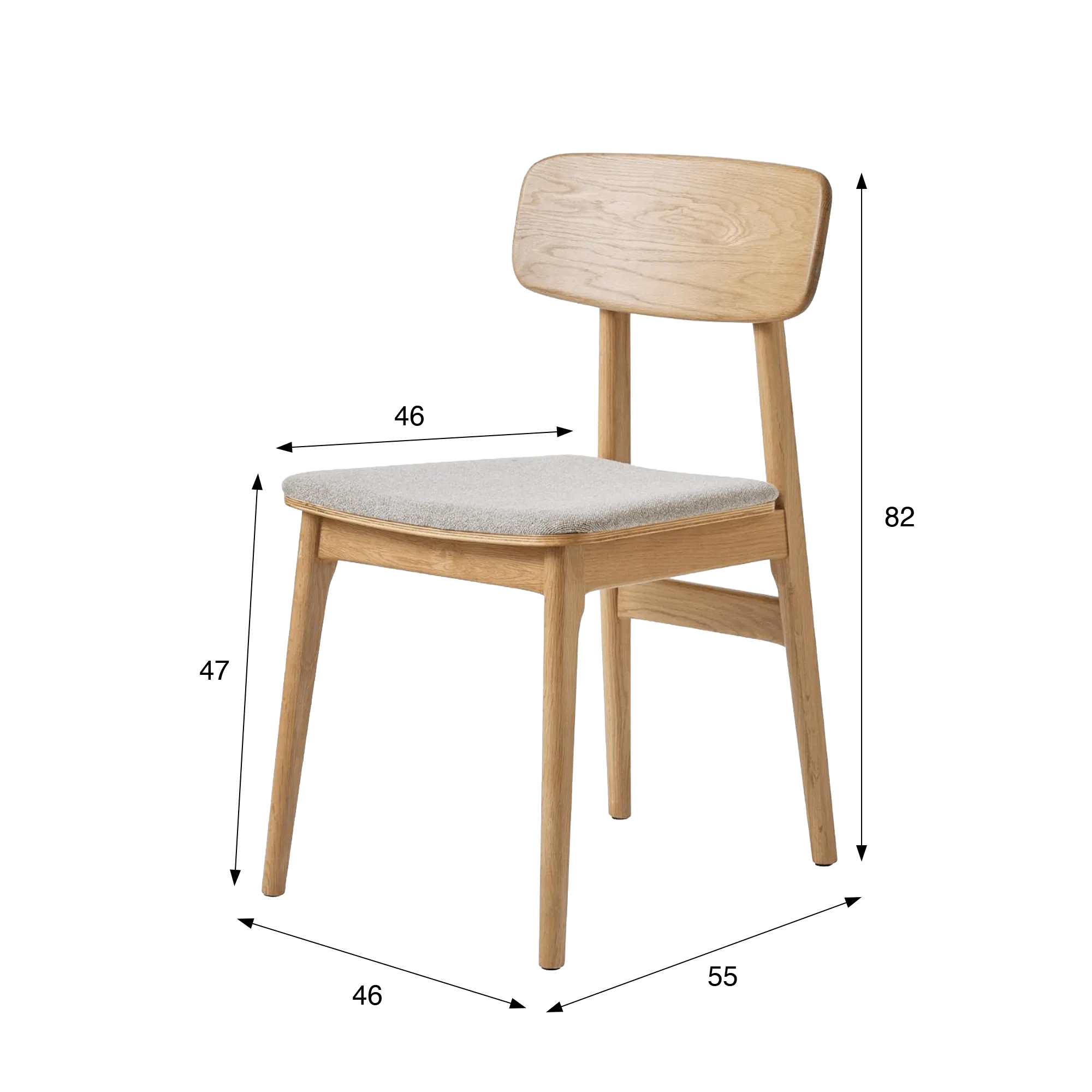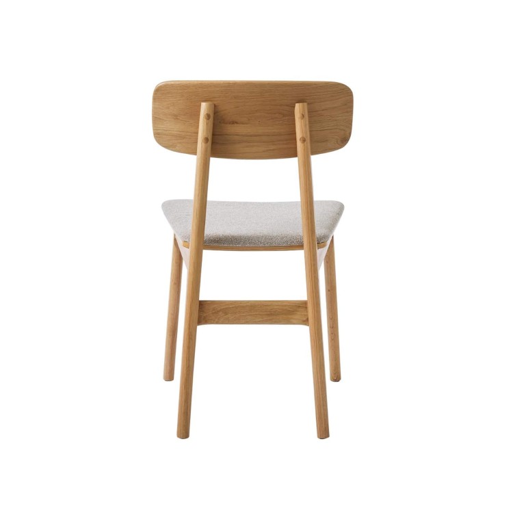 Die gepolsterte Sitzfläche des Esszimmerstuhls aus naturfarbener Eiche Lima, bezogen mit einem grauen Stoff in sanften Nuancen, schafft einen ausgewogenen Kontrast zur Wärme des Holzes. Seine dezent strukturierte Haptik verstärkt das Gefühl von Komfort und unterstreicht die Sorgfalt, die der Ergonomie gewidmet wurde. Mit harmonischen Proportionen, die auf den täglichen Gebrauch abgestimmt sind, bietet der Stuhl angenehmen Halt und zugleich viel Bewegungsfreiheit.