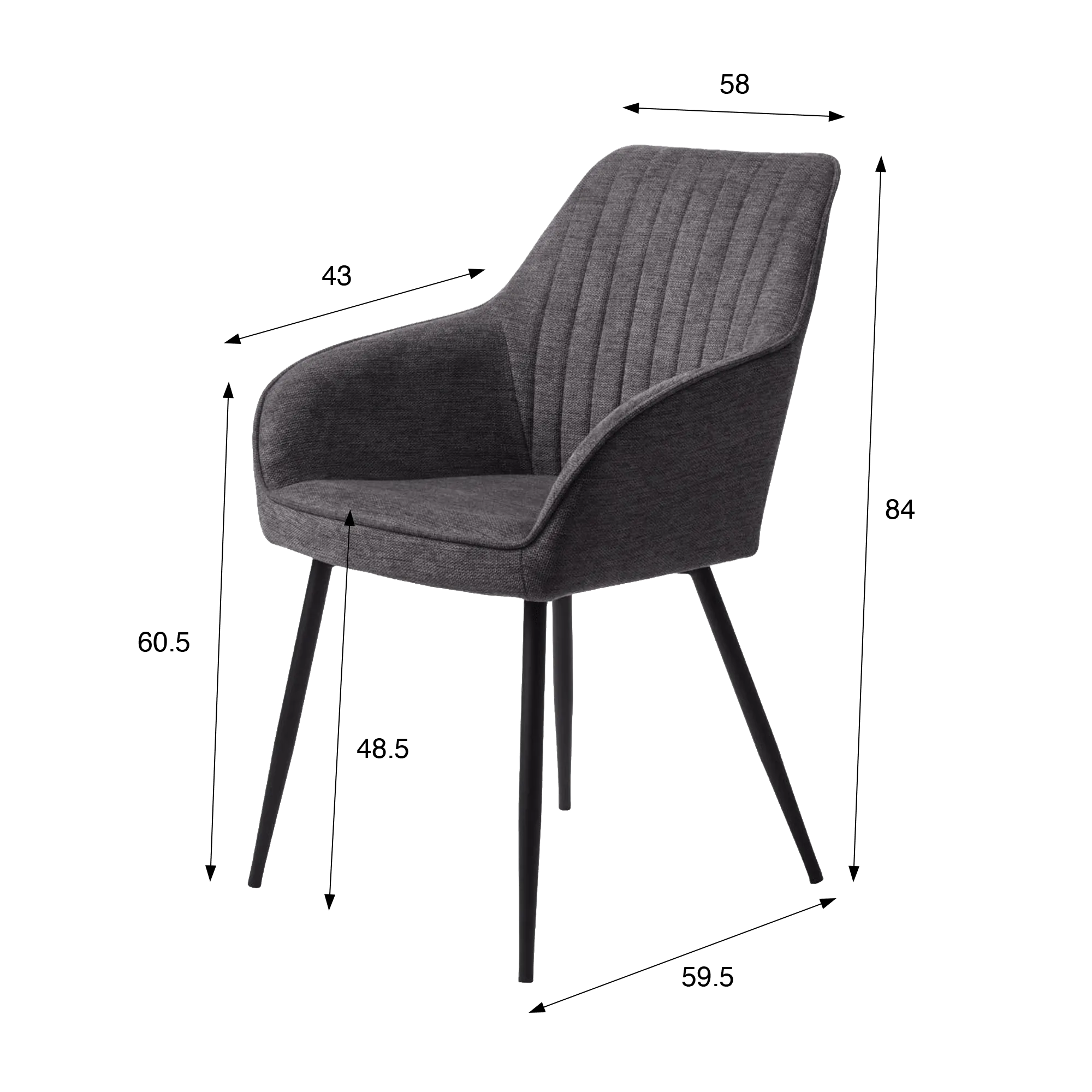 Bei der Entwicklung des Esszimmerstuhls aus anthrazitfarbenem Stoff Nolan Stripe haben wir an einer einladenden, umschließenden Silhouette gearbeitet, bei der die leicht integrierten Armlehnen die Rundung der Rückenlehne verlängern, um angenehmen Halt zu bieten, ohne das Gesamtbild zu beschweren. Die gepolsterte Sitzfläche, die für den täglichen Gebrauch konzipiert wurde, sorgt für eine angenehme Sitzhaltung bei langen Mahlzeiten oder gemeinsamen Momenten am Esstisch. Der Oekotex-zertifizierte Stoff aus 100 % Polyester bietet mit einem Martindale-Wert von über 30.000 Scheuertouren eine ausgezeichnete Abriebfestigkeit und garantiert so Langlebigkeit und Formbeständigkeit. Sein Flächengewicht von 380 g/m² sowie seine Pillingbeständigkeit (4-5) zeugen von der Sorgfalt, die in die Materialauswahl eingeflossen ist.